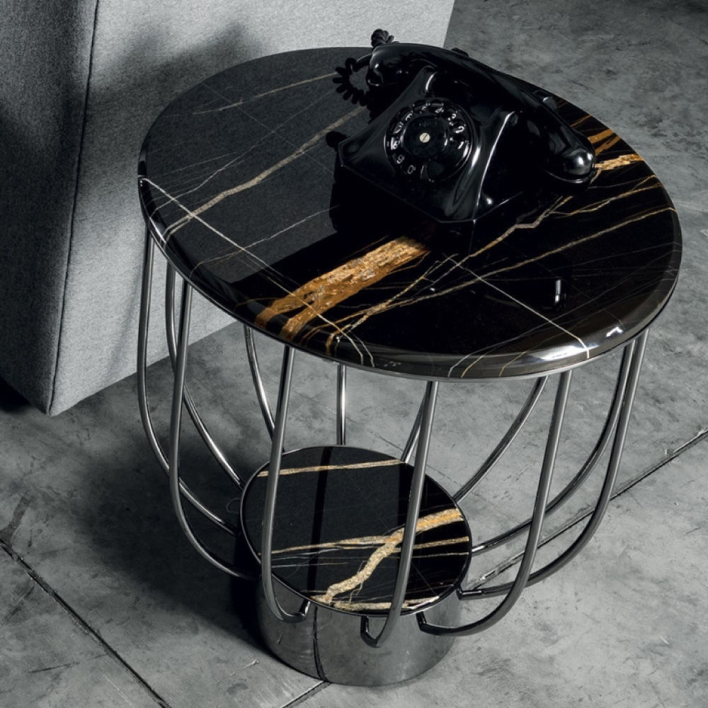 The charming elegance of Burano starts from its marble top. Unique and seductive veins that give personality to your living – to go then ahead being noticed in the detail of its base, identical to the top but smaller. Its legs define a delicate and round shape that ideally draw an open cage. Burano is available in two heights which perfectly adapt to every kind of project ans solution.