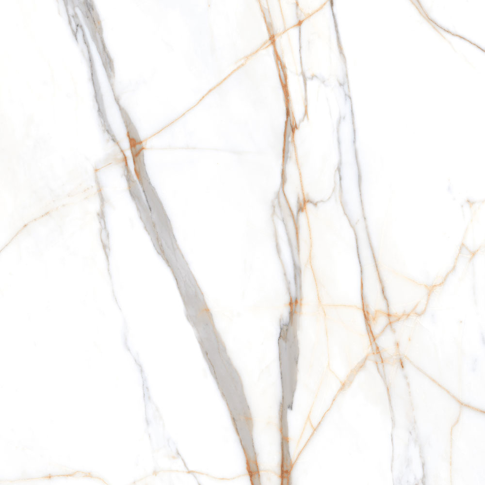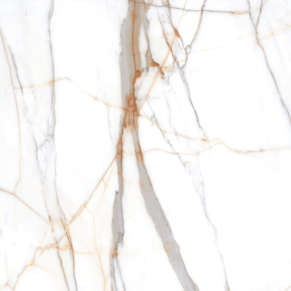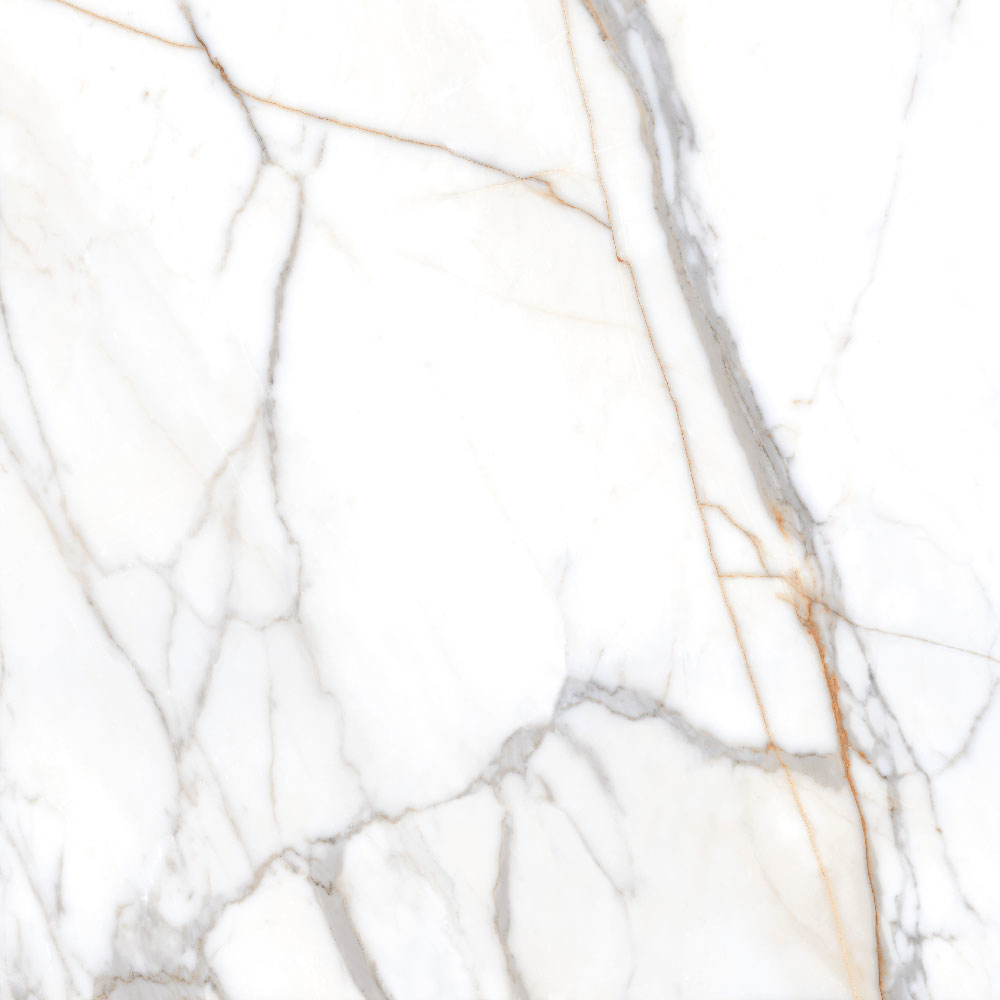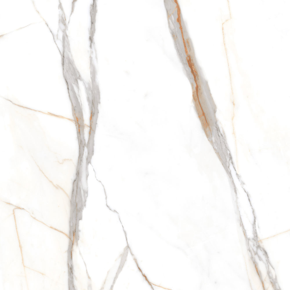 Calacatta gold white porcelain wall and floor tile offers an alternate white marble effect look for those not wanting the traditional grey veined tile. As a design colour white is often described as a relaxing colour, neutral to its surroundings, combine this with the beautiful natural marble-inspired vein patterns and you get a fusion of modern colour and a classic-looking floor. Marble has been the inspiration for interior floor tiles for as long as we have tiled floors, but the use of real marble can be fraught with difficulties. From the specialist sealers and cleaners required for its maintenance to the prohibitive cost of the stone and its installation, real marble is often simply not viable for most. However modern porcelain manufacturing has developed by leaps and bounds in recent years, and now with the availability of high-definition imaging technology, you can get a real marble-looking floor for a fraction of the price of the real stone. Ideal for use as a floor and a wall tile throughout the home this durable porcelain floor tile is perfect for busy living areas, hallways and of course bathrooms and kitchens.