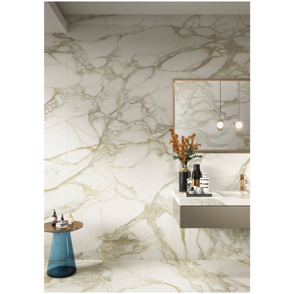 With its refined textures and large-format slabs, Calacatta allows designers and architects to create timeless, sophisticated spaces, combining the beauty of natural stone with the durability and functionality of high-performance ceramic surfaces.