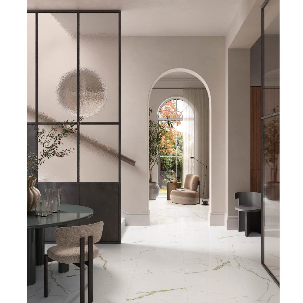 With its pure white background enhanced by refined gray veining, White Calacatta offers timeless sophistication and luminous beauty. Available in large-format slabs, it combines the elegance of natural stone with the durability, functionality, and precision of high-performance ceramic surfaces.