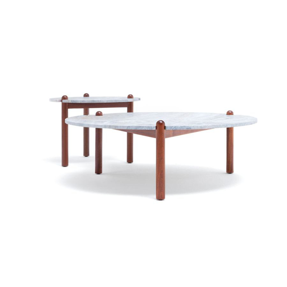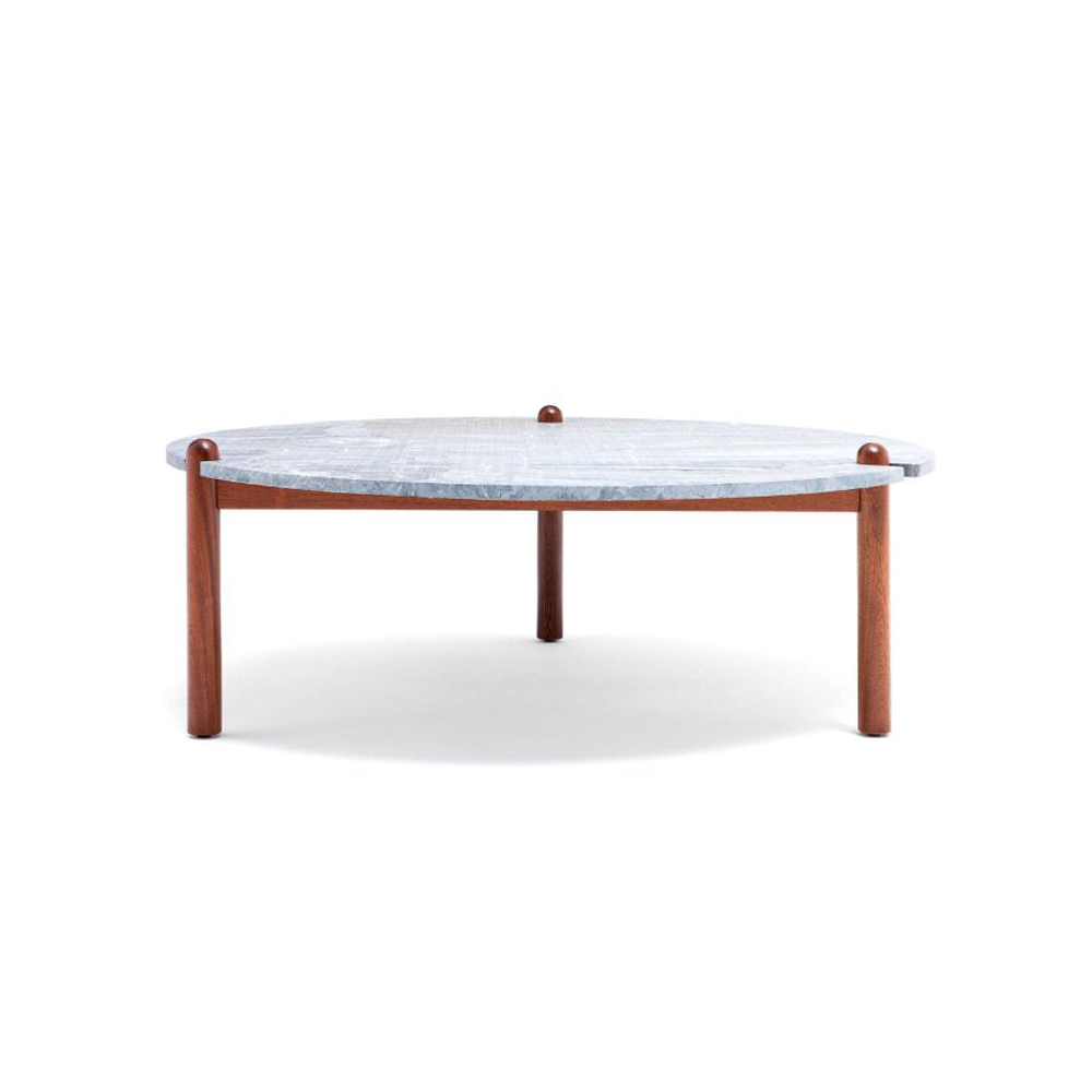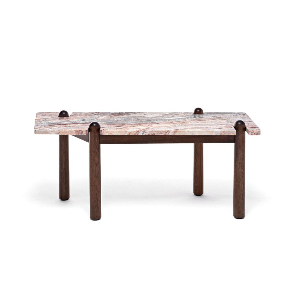 The majesty of the wood welcomes the marble top with its many veins of colour, the matt finish emphasizes the play of light and dark. The supporting structure of the coffee table is made of solid Sapelli mahogany.