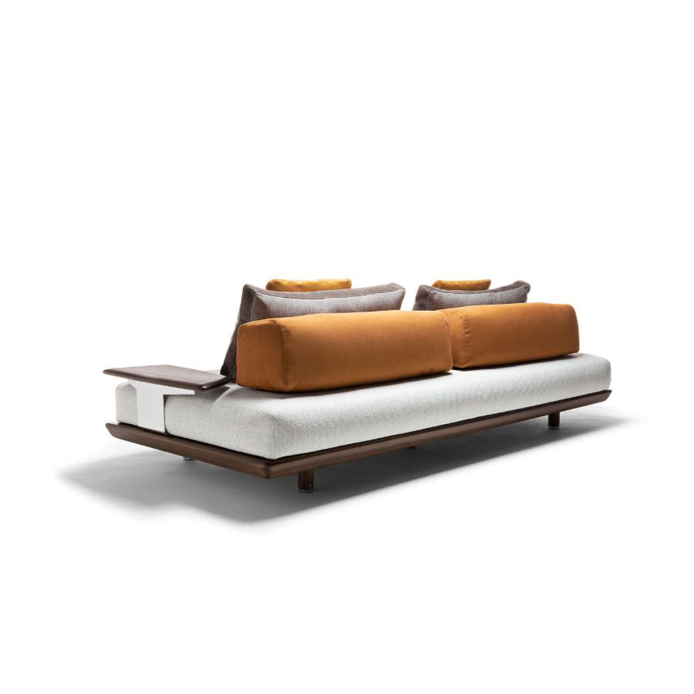 Born from the idea of a real custom experience tailored to individual desires, the Caprera Sofa combines the simplicity of its lines and the natural harmony of mahogany with a wide range of materials that enrich the piece with unique movement.
