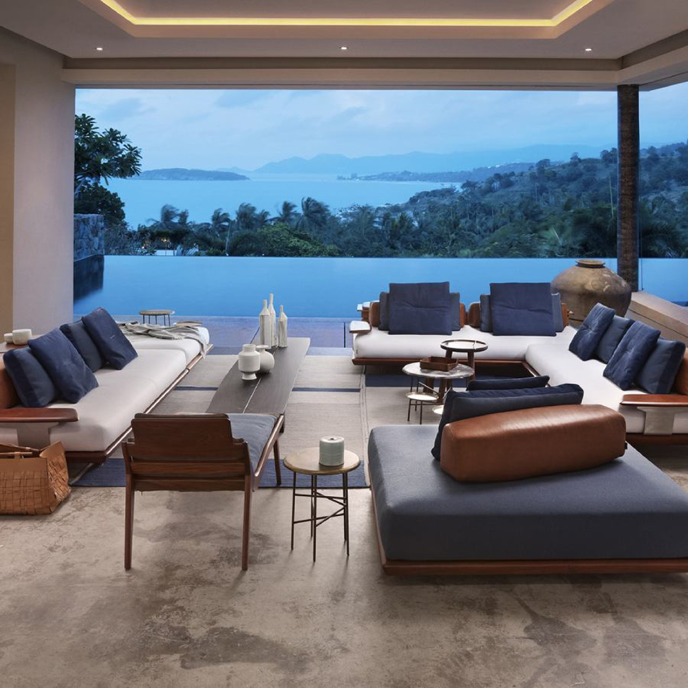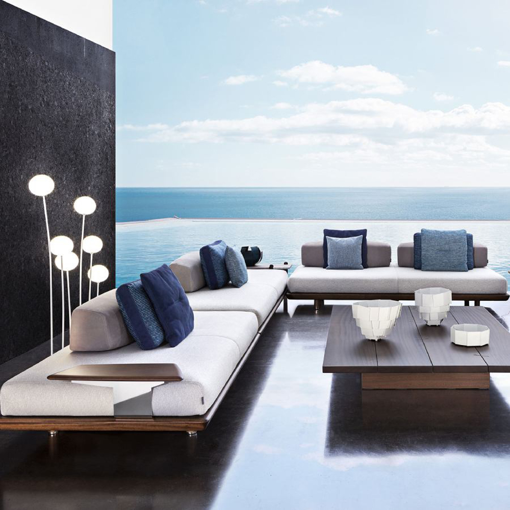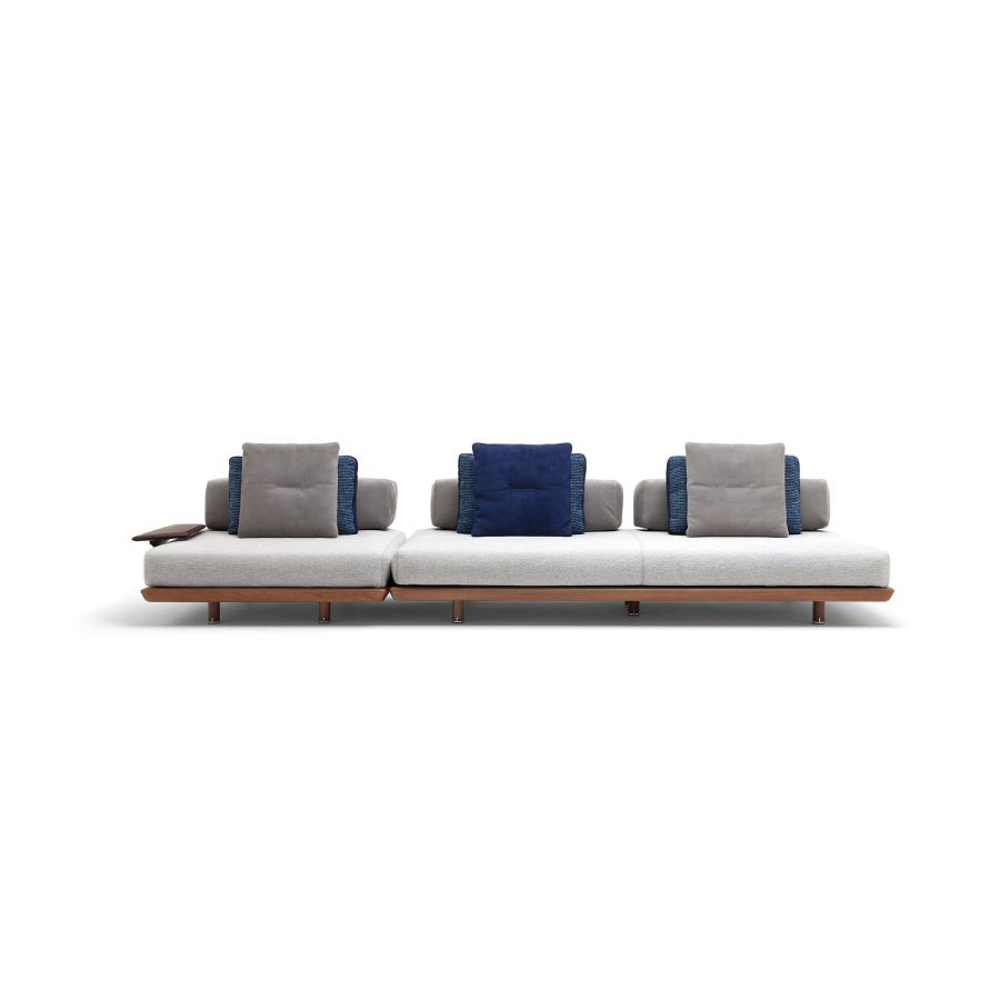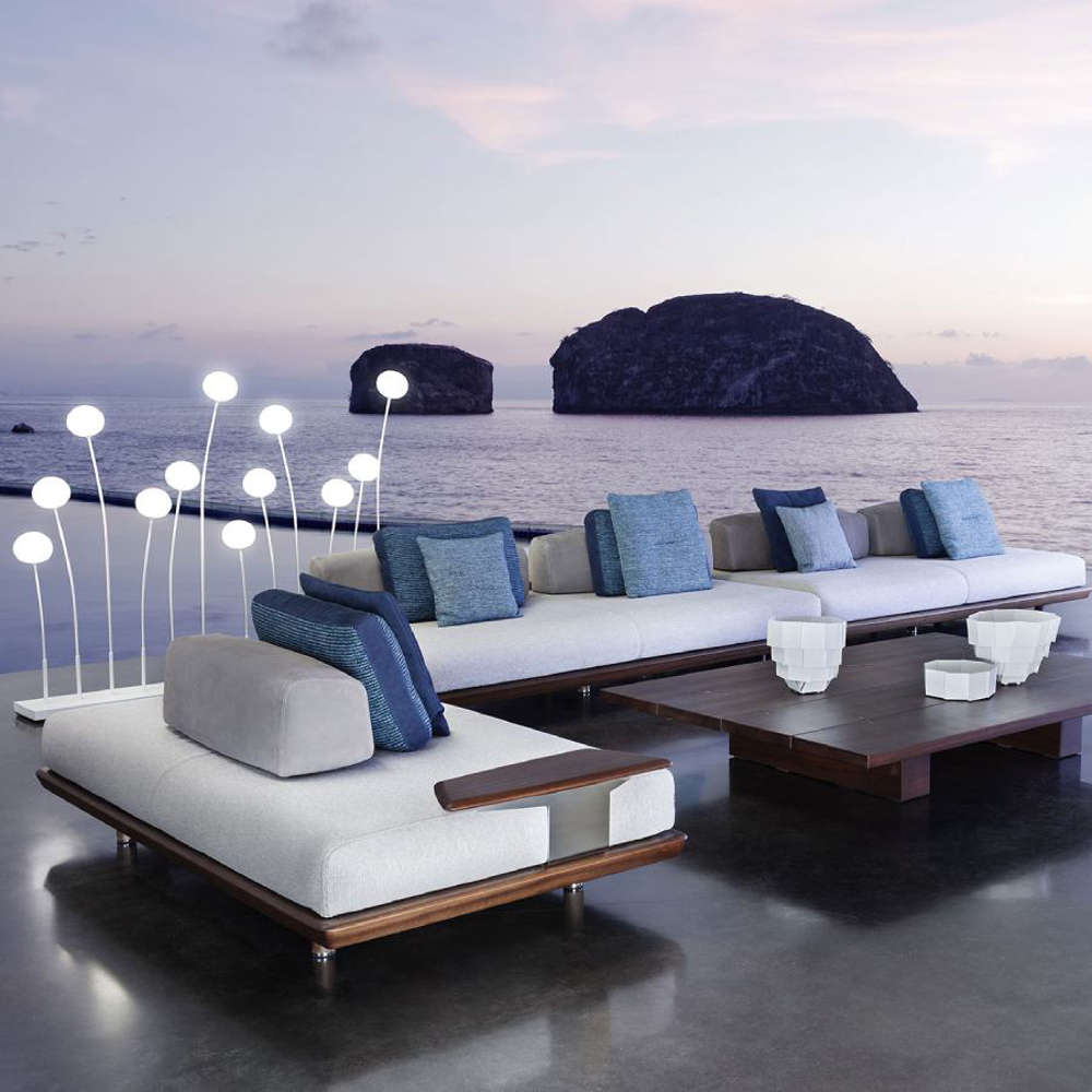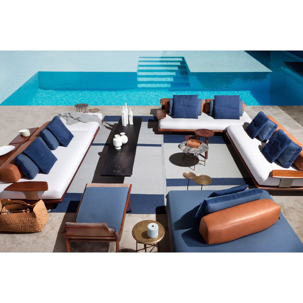 Available modules can be juxtaposed with one another, articulating the sofa just the way you want to. You can choose modules with the same depth, or elements such as poufs and islands, to give life to angular compositions and new exterior landscapes. As the outdoor scenery changes with the seasons and with time, the Caprera Island modules fill the space with timeless design and comfort.