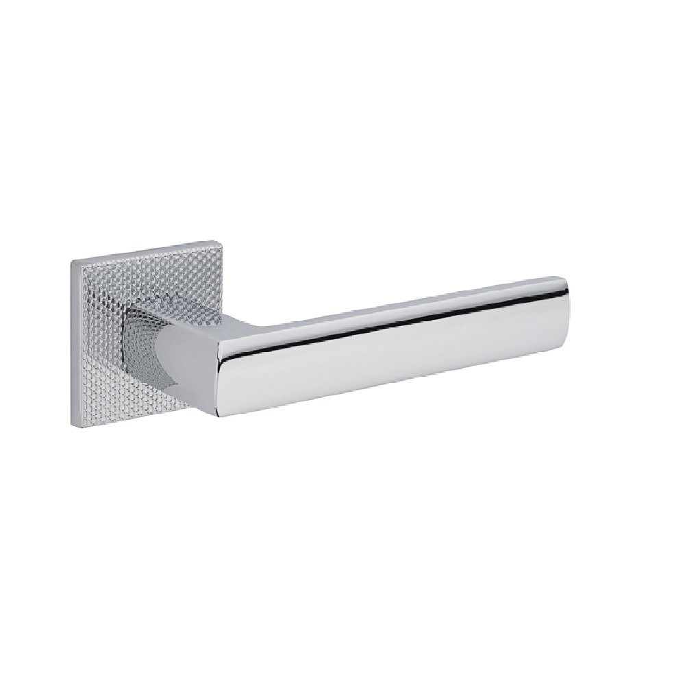 Lever set. 0.19" plate. Easy to fit into the metallic adapter with a “click” system. Reversible recuperating spring. 0.3"x3.5" square spindle. Handle fixed by a M 6 hidden threaded pin.