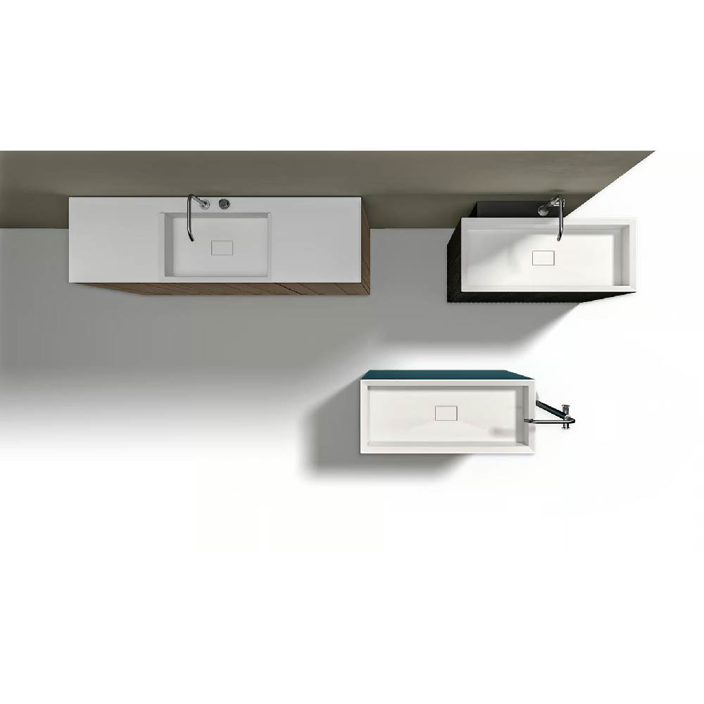 In addition to maximizing the sink space, even in low depth furniture, CHRONO 14.96"/17.32" offers the possibility to easily adapt the exclusive basins of this collection, adapting them to different needs of positioning the tap. Depending on the space and the refined style, you can ask for the solution with wall tap, with hole on the top or in a free-standing monobloc solution.