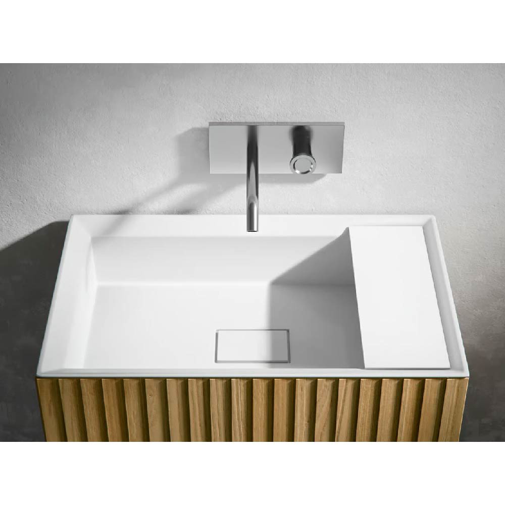 In addition to maximizing the sink space, even in low depth furniture, CHRONO 14.96"/17.32" offers the possibility to easily adapt the exclusive basins of this collection, adapting them to different needs of positioning the tap. Depending on the space and the refined style, you can ask for the solution with wall tap, with hole on the top or in a free-standing monobloc solution.