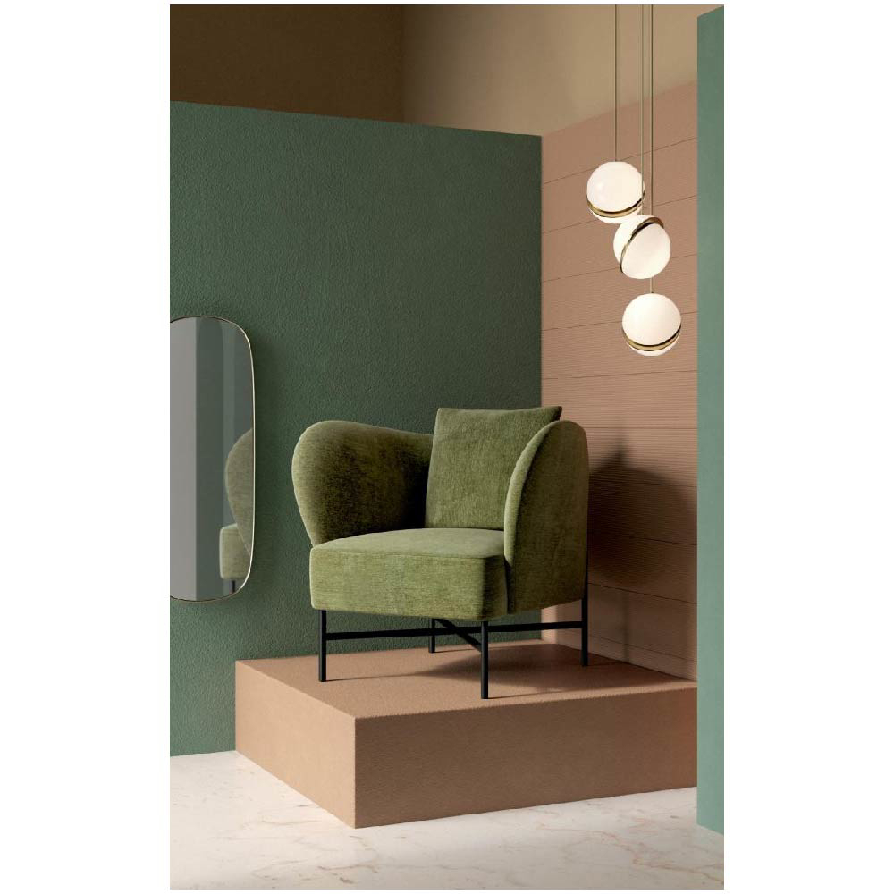 The structure of the body is in solid wood and curved plywood, upholstered with expanded polyurethane foam and dacron.