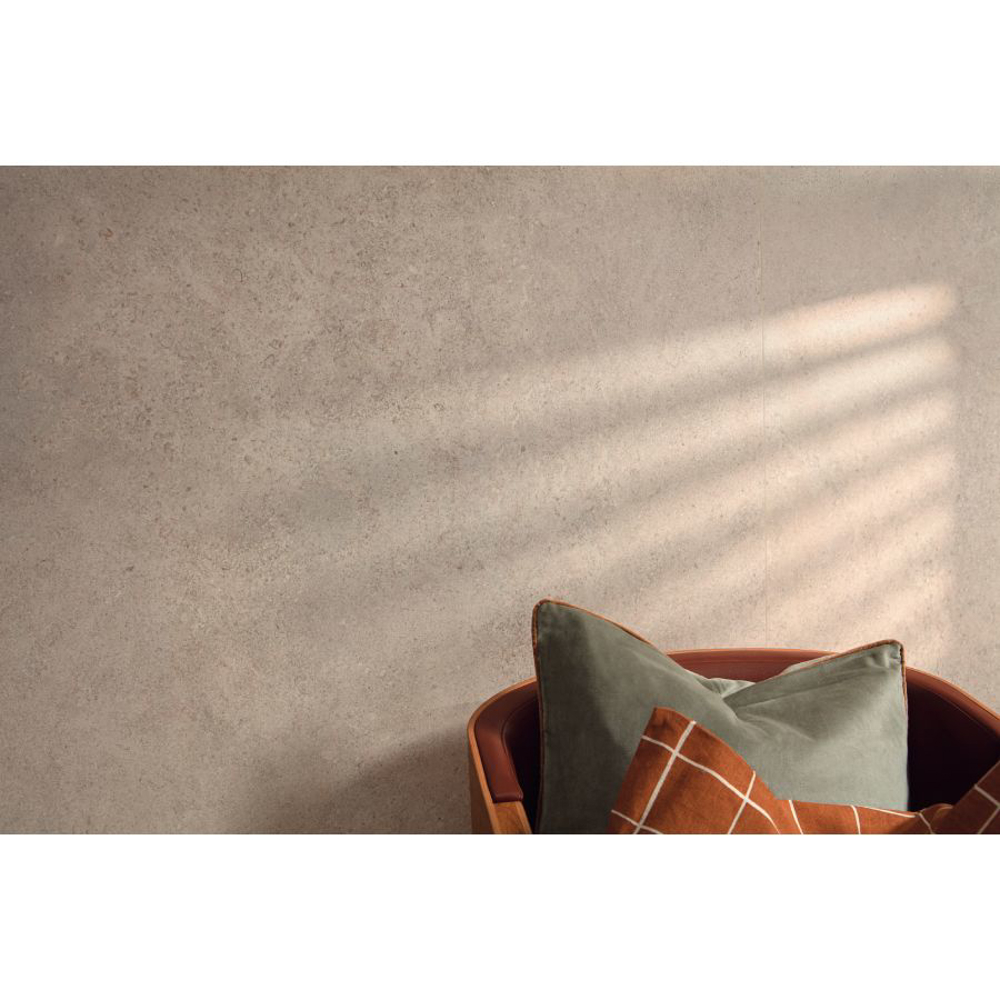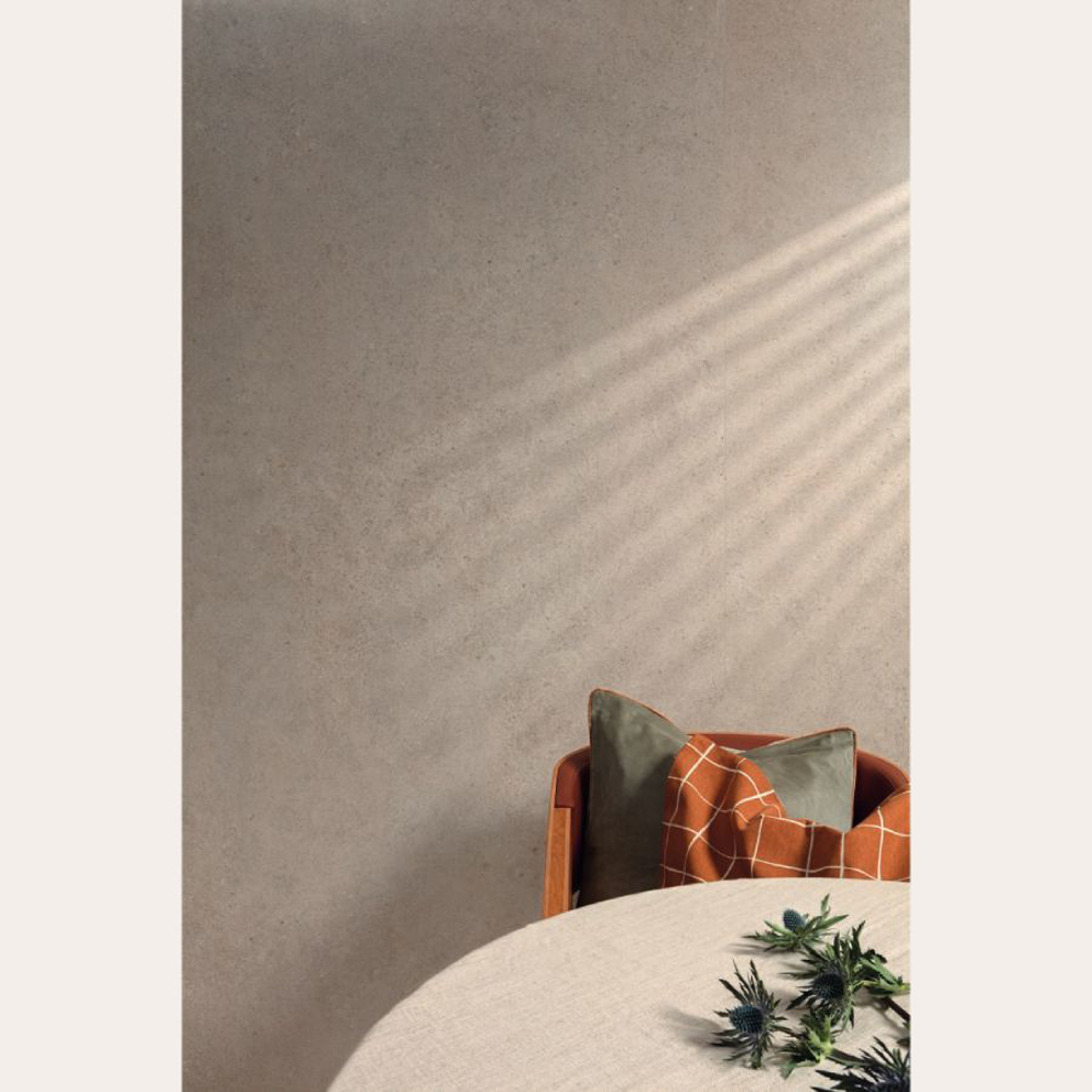 The collection comes in a soft warm colour spectrum in keeping with current trends, perfect for creating soothing, harmonious living spaces. This porcelain tile collection comes in two finishes and a choice of different thicknesses, depending on the applied technology and intended use of the tiles. In the case of the Shaped finish, the design is carefully aligned with the relief pattern found on this kind of stone. These tiles come in an 5/16" thick 40"x40" format or a 1/4" thick 40"x108" one, ideal for bringing a restful air of elegance to living, whether public or private. The Non-Slip finish is available in a 40"x40" format in either an 5/16" thickness or the highly popular 13/16" thick one, conceived to help create robust, visually appealing outdoor paving. The collection also features matching white-body tiles so that living spaces can be created with an all-round, unified appearance.