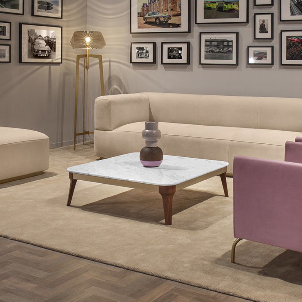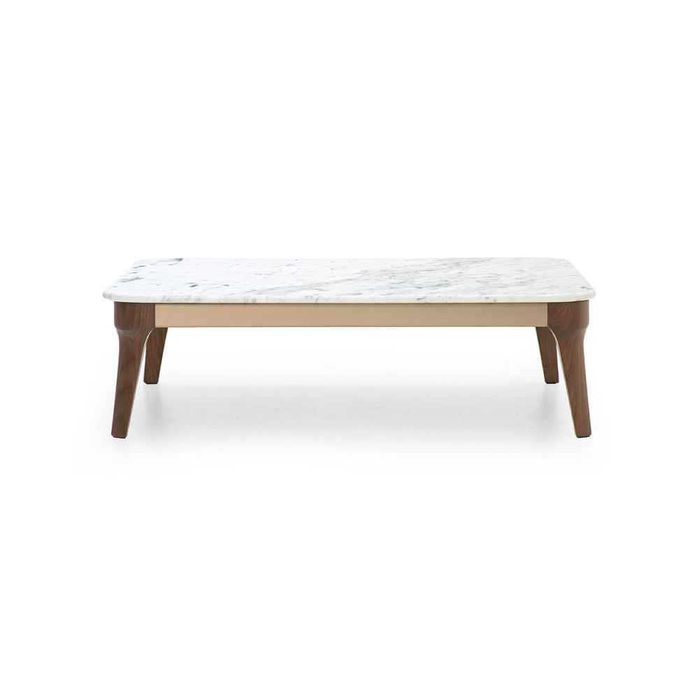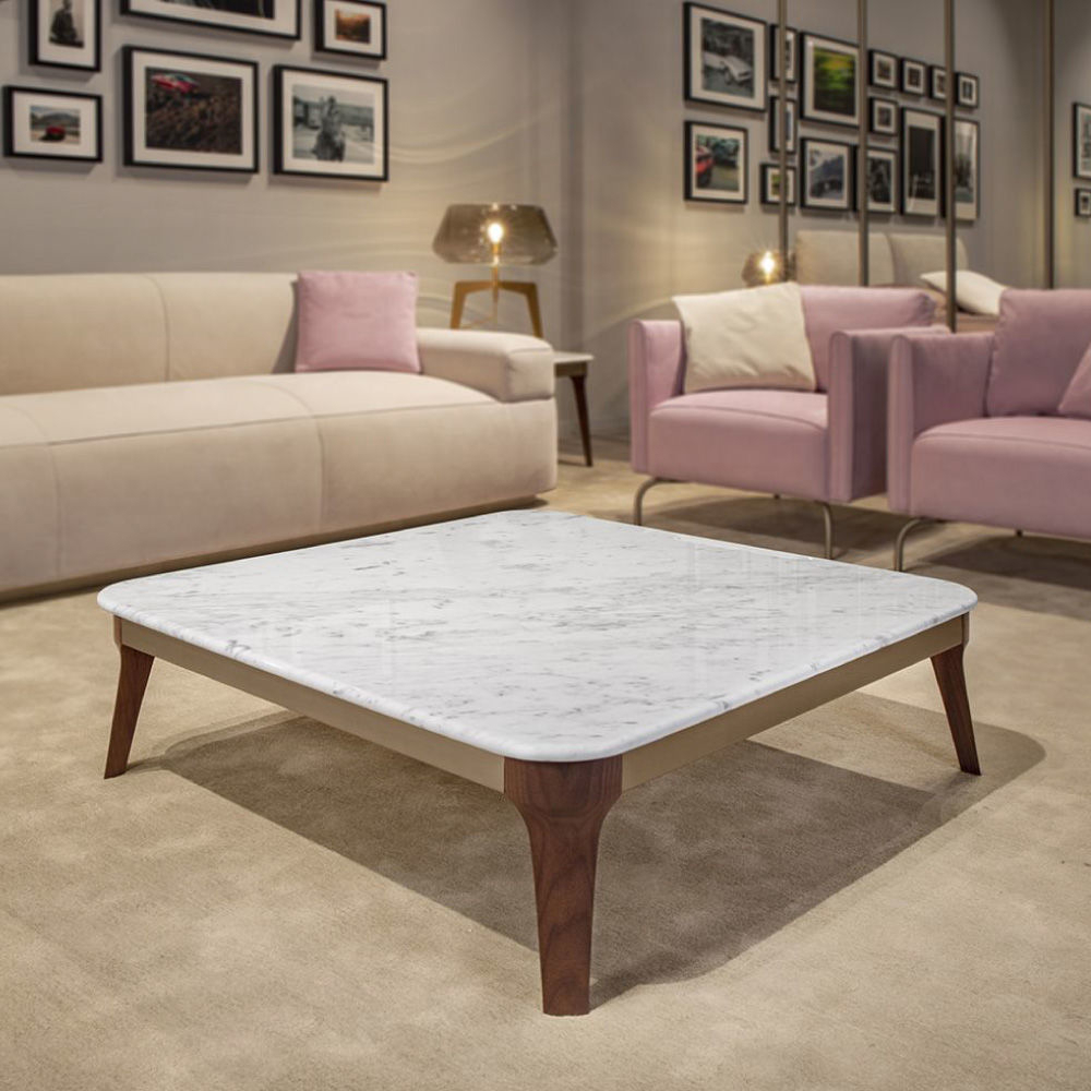 Top in Carrara marble, legs in Canaletto Walnut solid wood, metal inserts lacquered col. black.