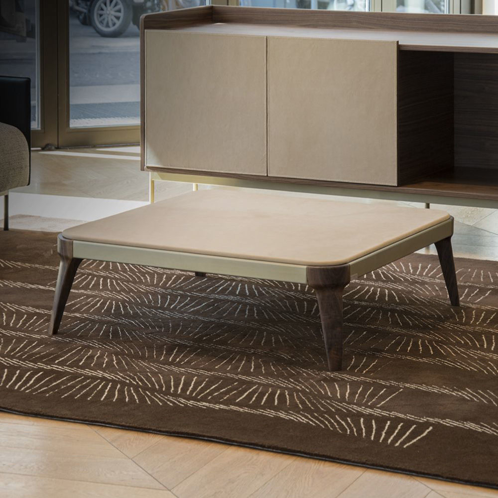Top in Carrara marble, legs in Canaletto Walnut solid wood, metal inserts lacquered col. black.