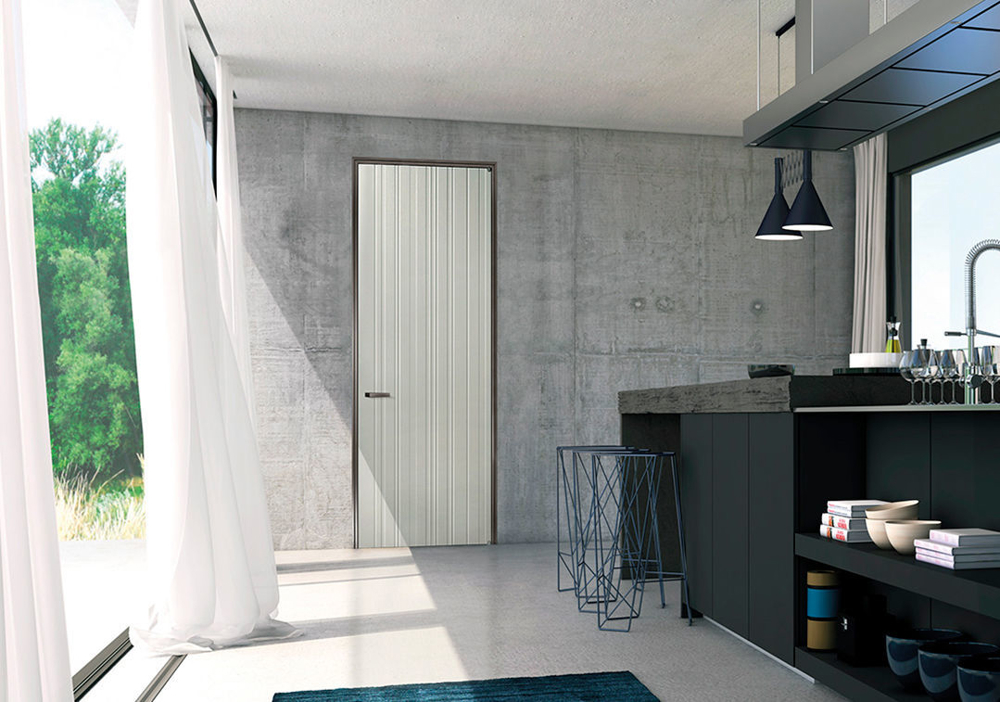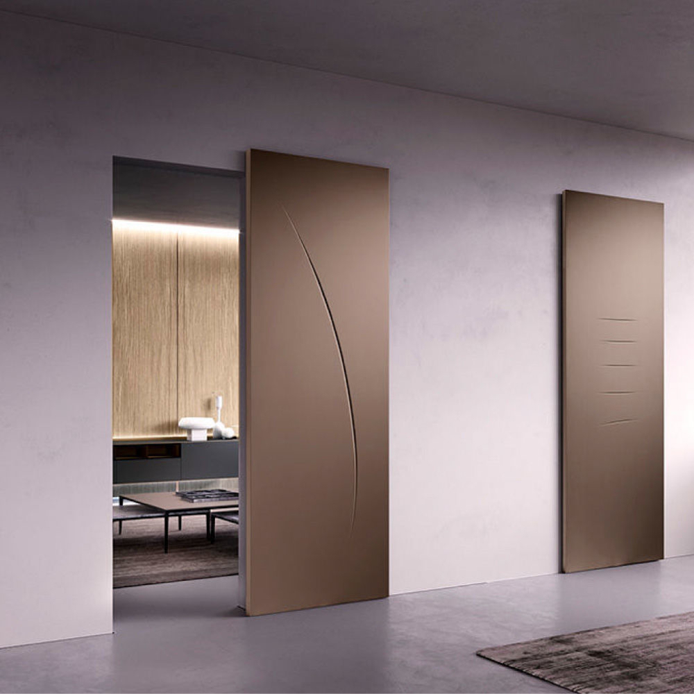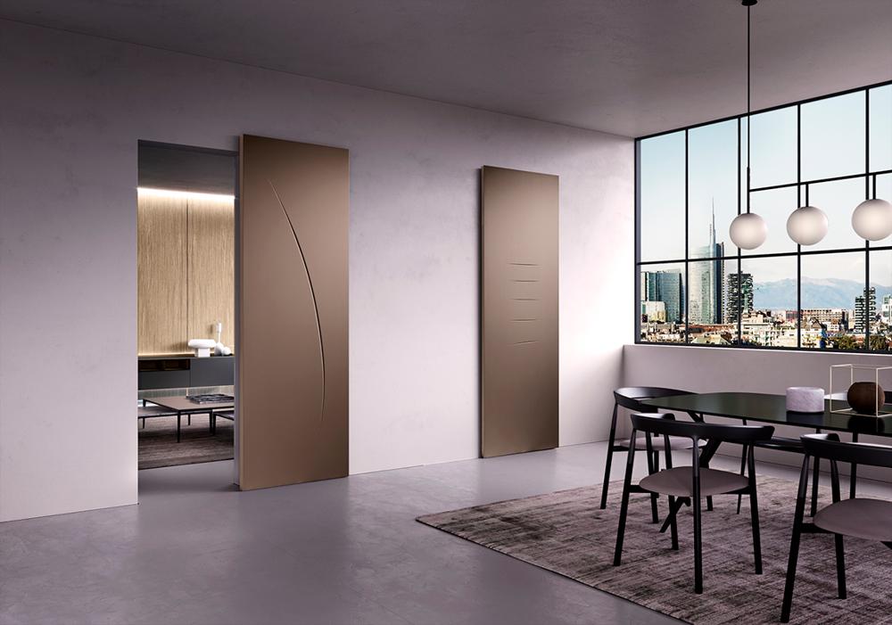With its discreet details, Color collection skillfully interprets the elegance and modernity of lacquered doors. The aesthetic cleanliness of the smooth leaf, the glass and aluminium details and pantographed bas-reliefs give life to a timeless collection.