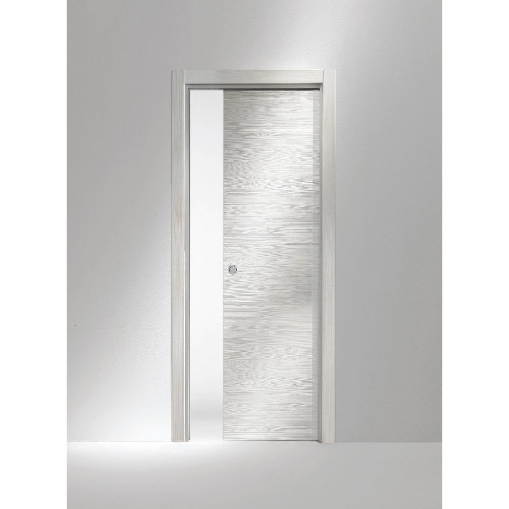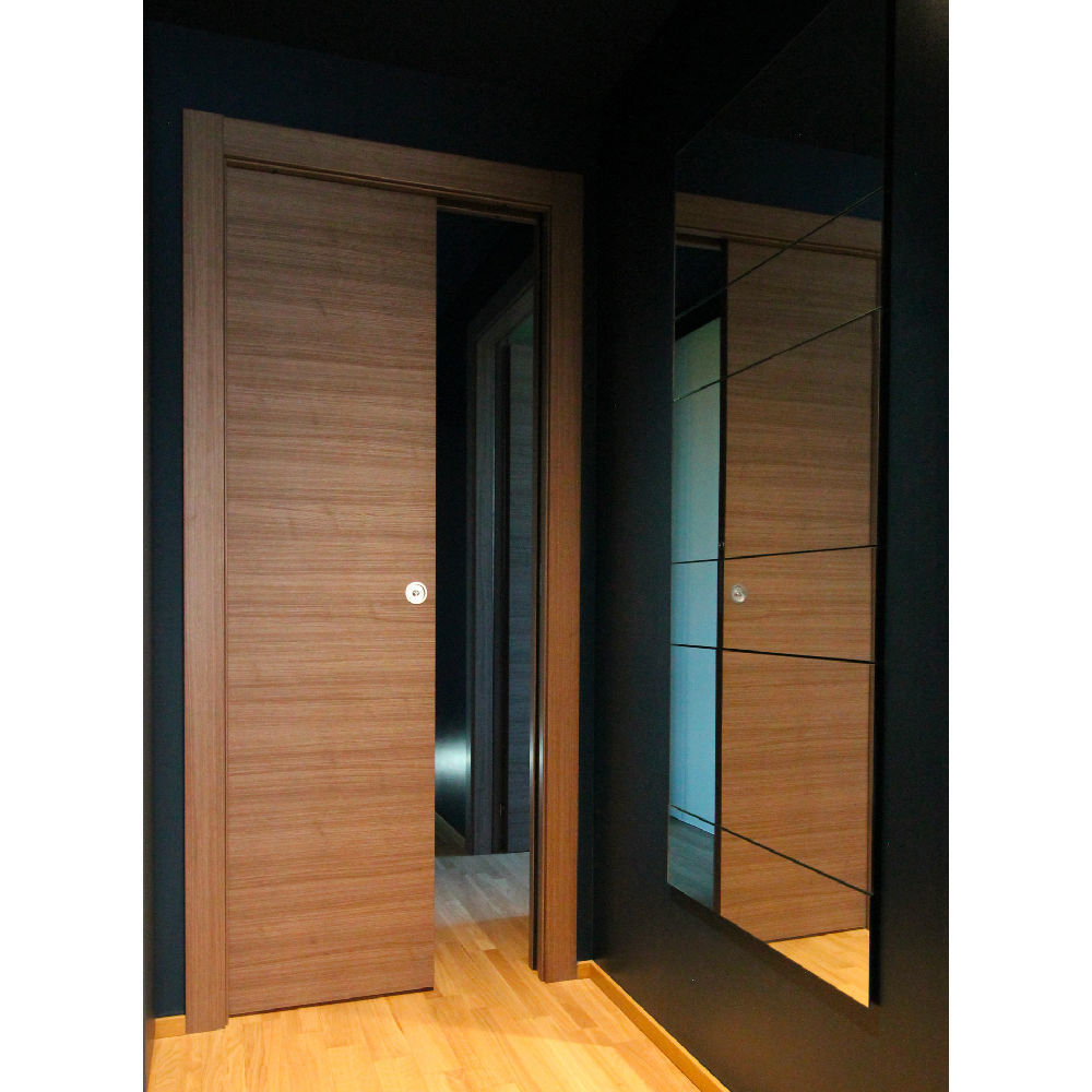 Sliding outside the wall door with frame to be installed on traditional wood false frame (not included).