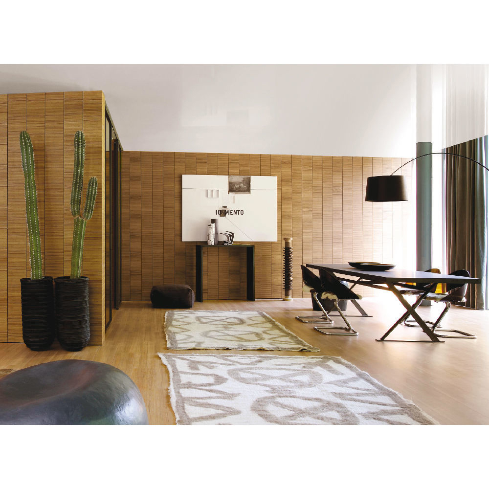 After the aluminum and glass system Pavilion, based on a more rational design, transparent materials and light, Continuum is a rational and linear project, offering a new version of traditional paneling, to give a warm and romantic taste to the room.