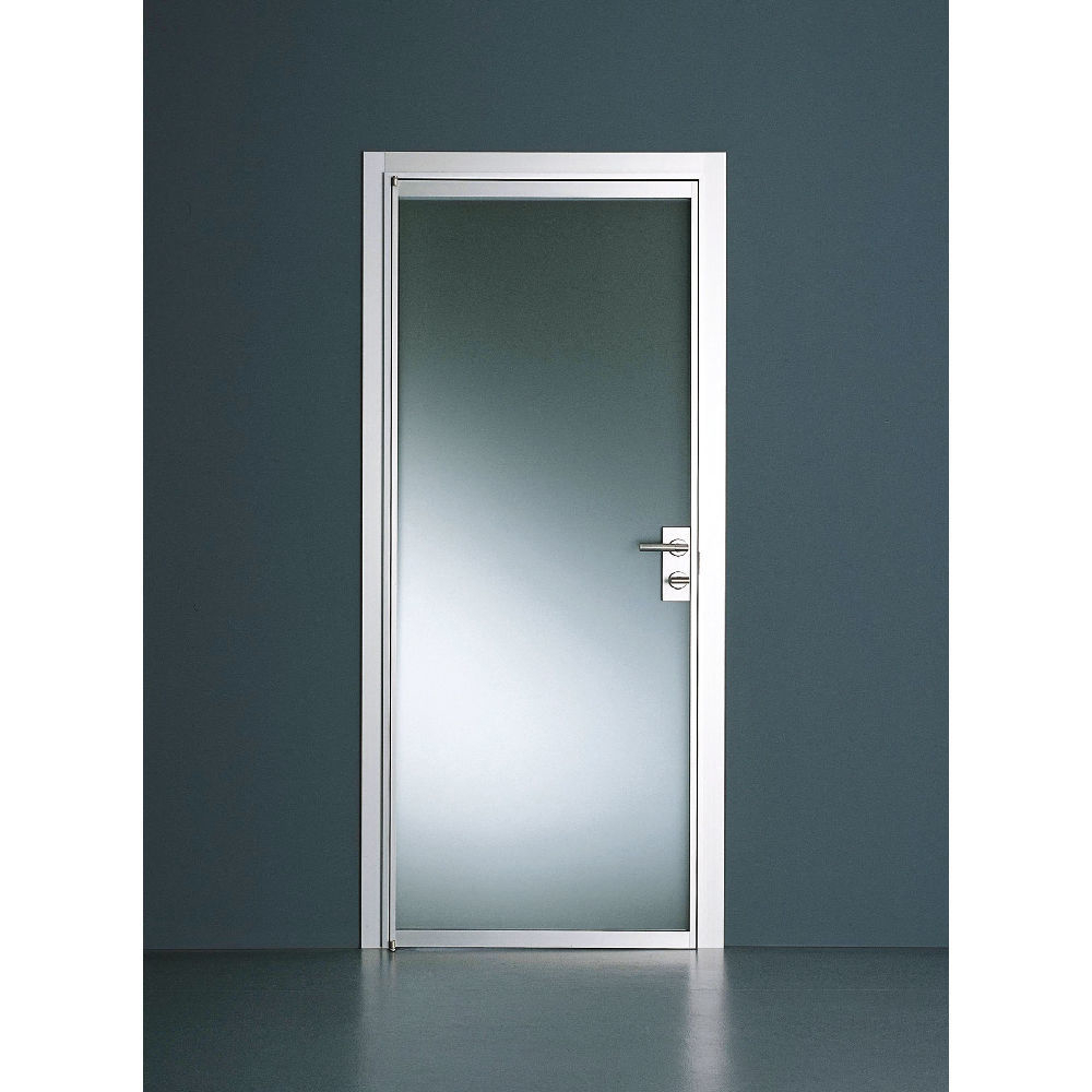Swing door thickness 42 mm., solid plain panel or glass panel, with aluminum profiles and 6 mm. tempered or laminated safety glass, jamb with squared section. Aluminum frame extending from 85 to 125 mm, aluminum trims, plastic gasket, patented hinges and mechanical lock arranged for privacy thumbturn, handle only or cylinder with key.