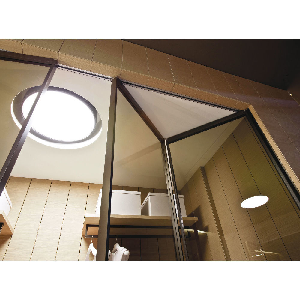 Two glasses hold a metal mesh to accentuate the sheen and allowing the light to filter through. The elegance of folding Pavilion Libro with metal mesh is a great solution for every environment, thanks to the several combinations of profiles and glasses. Precision, attention to the details, high quality materials and design make Pavilion Libro a furnishing element.