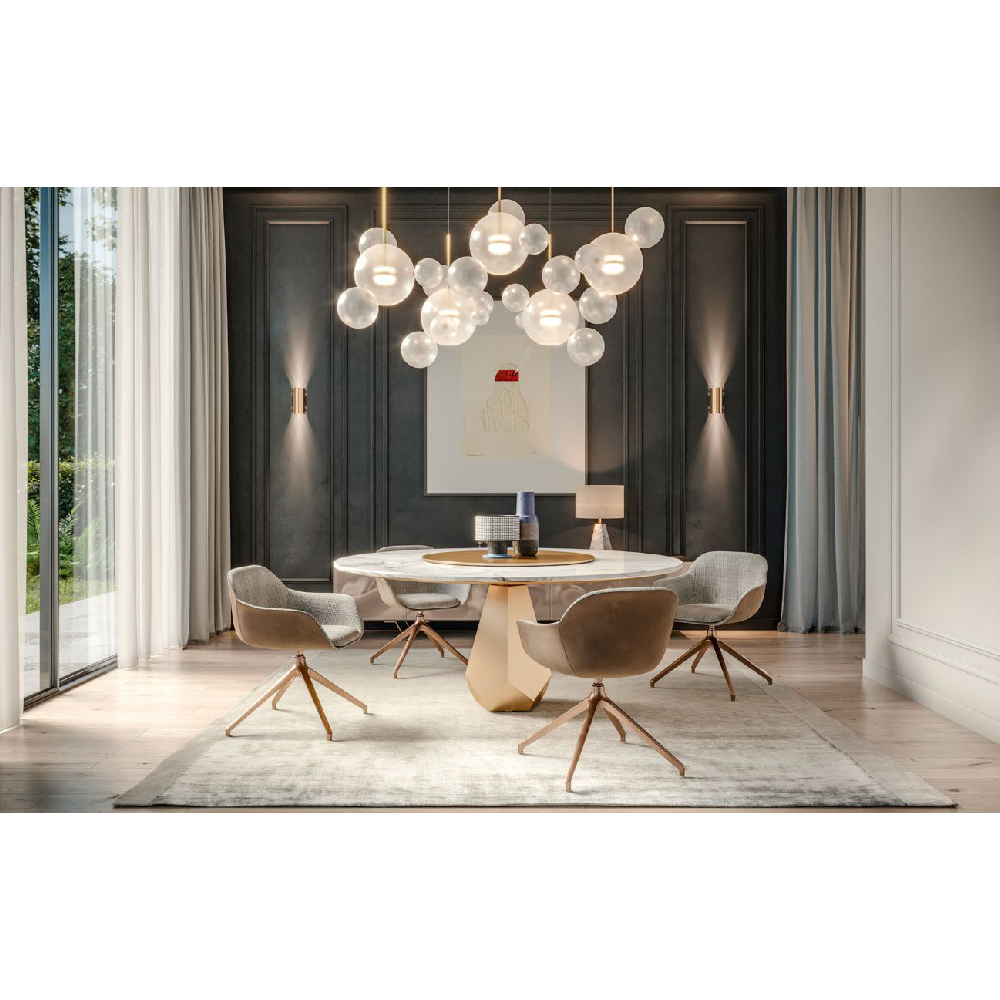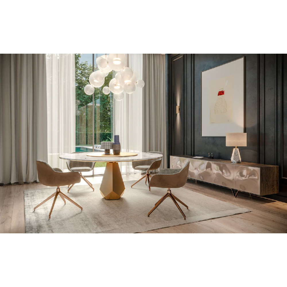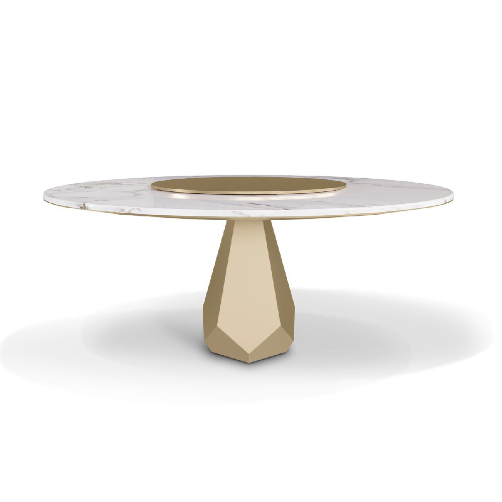 Top in marble Calacatta Gold, lacquered structure & lazy susan in Pale Gold finish.