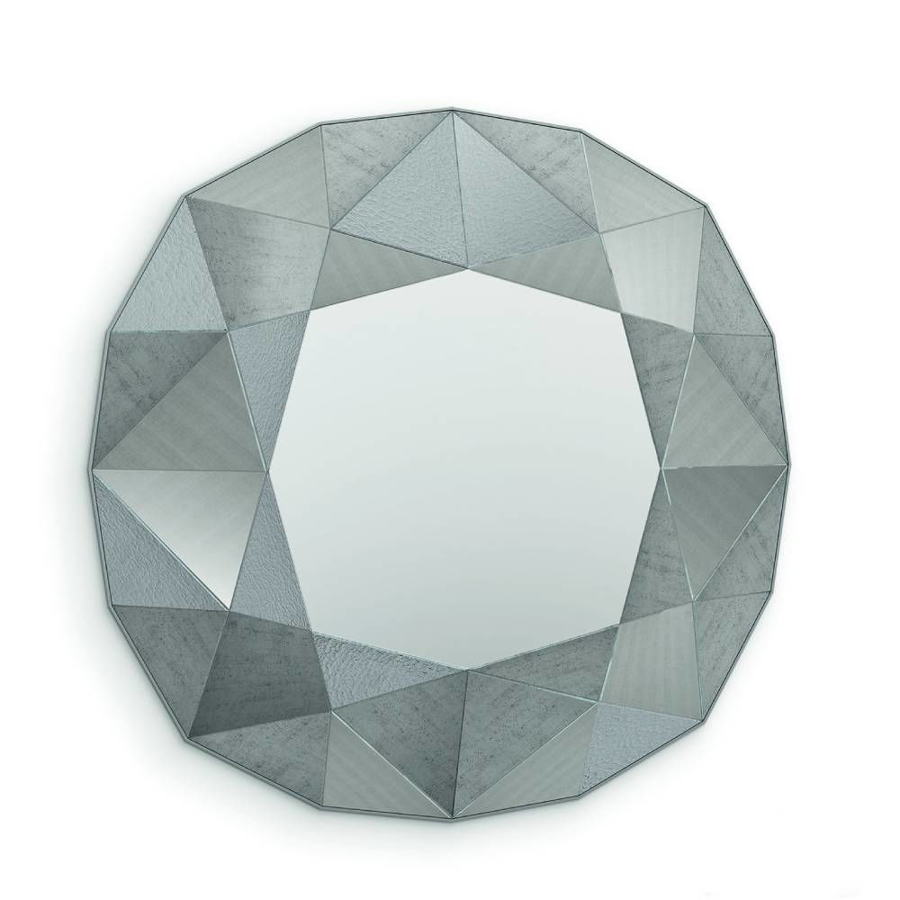 A jewel-mirror that recalls the shape of a diamond. Its numerous facets, decorated in foam glass elements, are further enhanced by the back lighting. Classy and elegant.