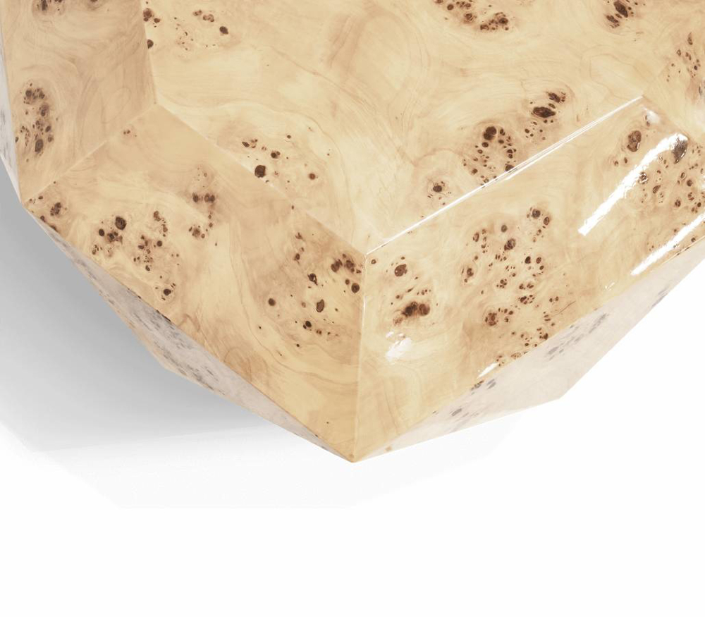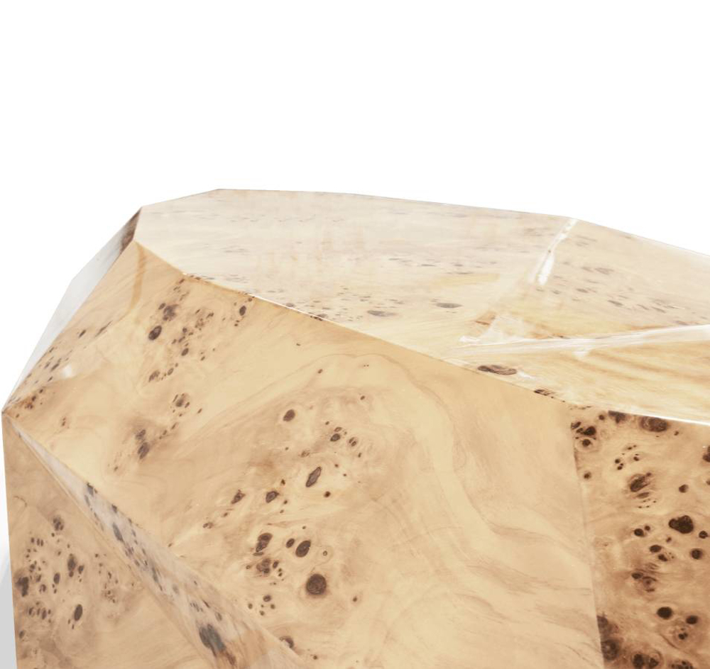 Poplar Root Veneer exterior. Wood structure. Feet: Polished casted brass.