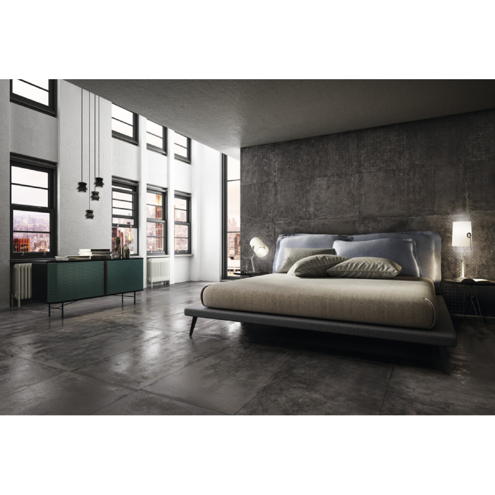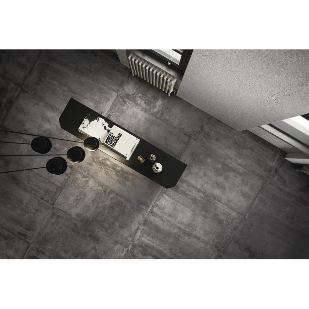 Italian porcelain designer tile by Diesel Living, Stage is a bold reinterpretation of industrial metal, transforming structured, corroded, and dented surfaces into expressive porcelain stoneware. This collection explores the aesthetic potential of metal, translating its textures and imperfections into distinctive, high-performance tiles for floors and walls.