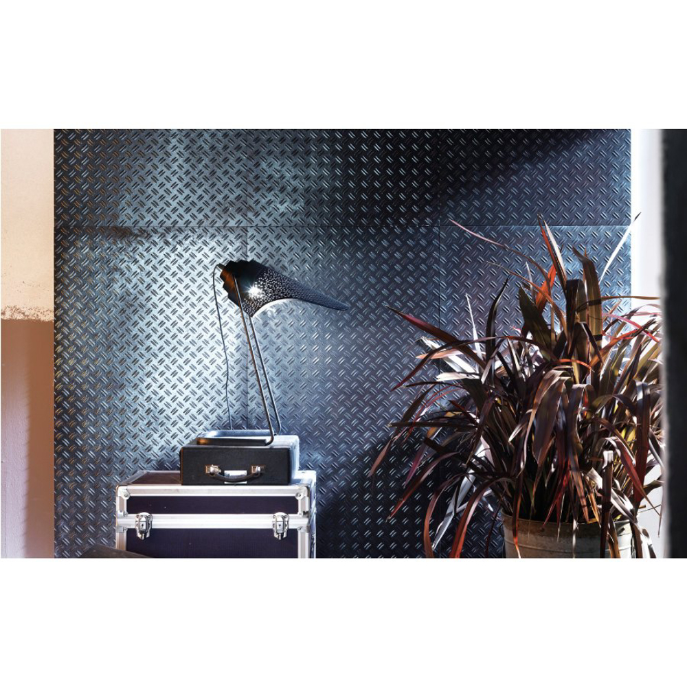 Italian porcelain designer tile by Diesel Living, Stage is a bold reinterpretation of industrial metal, transforming structured, corroded, and dented surfaces into expressive porcelain stoneware. This collection explores the aesthetic potential of metal, translating its textures and imperfections into distinctive, high-performance tiles for floors and walls.