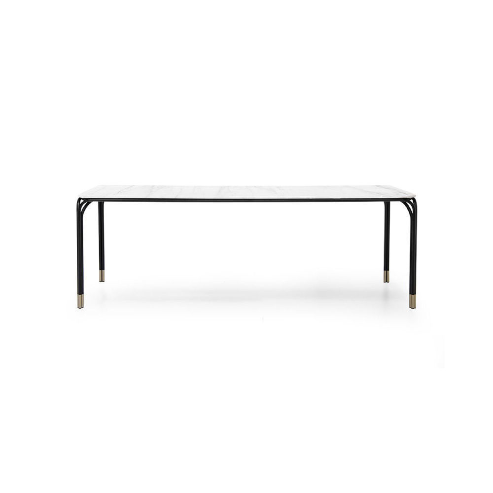 Top in Grigio Carnico marble, metal structure in matt black finish and feet in light gold finish.