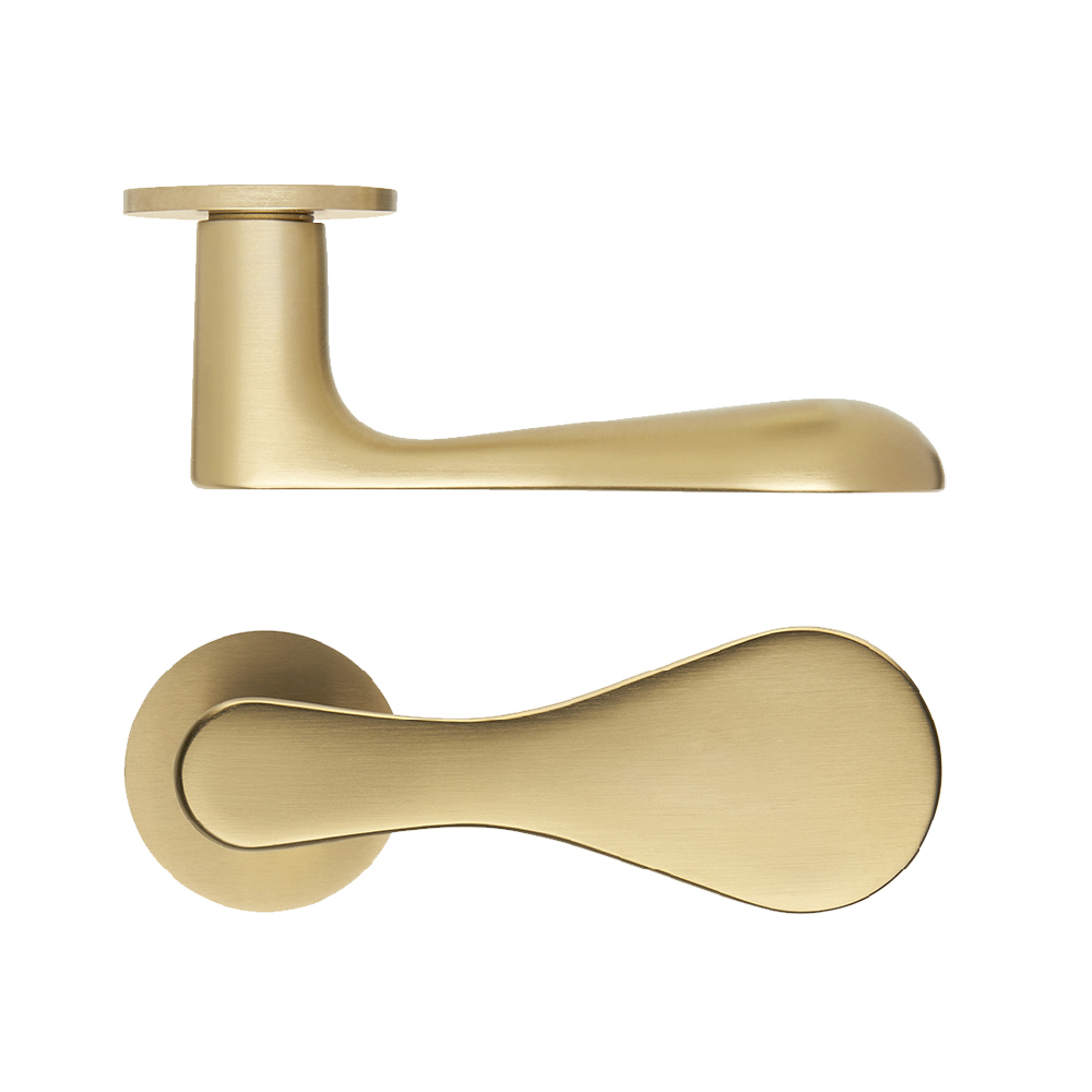 A door handle featuring a soft and affable shape, in which brass conveys its allure thanks to the best possible form. A handle that is an Archimedean lever, a prehensile device with a vivid visual presence. In a world that obsessively pursues technological innovation, this product belongs to the family of “slowly evolving” objects, whose present form is not so different from its predecessors of 300 years ago.