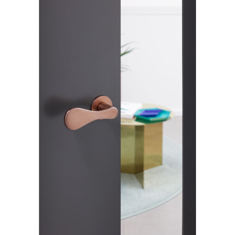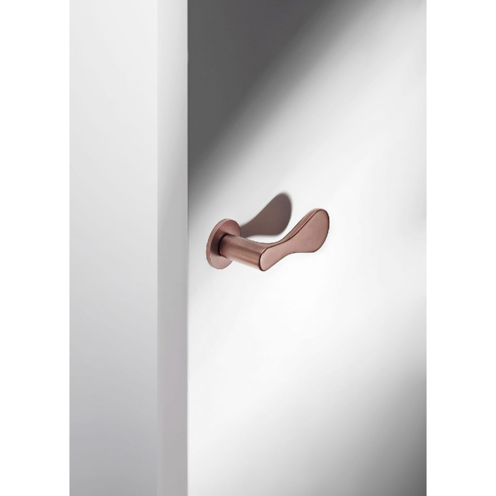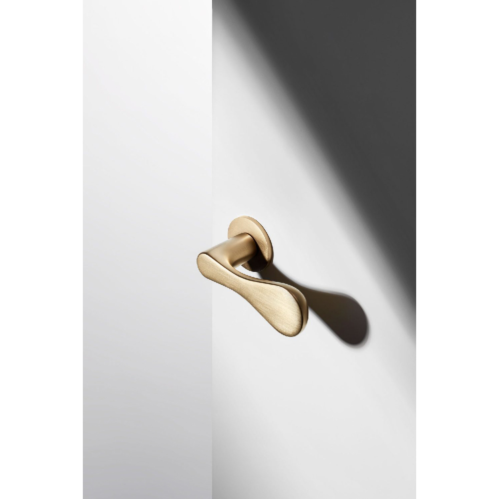 A door handle featuring a soft and affable shape, in which brass conveys its allure thanks to the best possible form. A handle that is an Archimedean lever, a prehensile device with a vivid visual presence. In a world that obsessively pursues technological innovation, this product belongs to the family of “slowly evolving” objects, whose present form is not so different from its predecessors of 300 years ago.