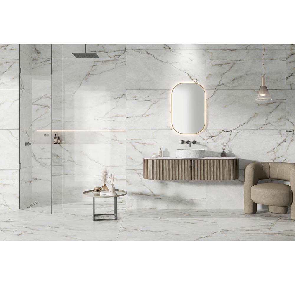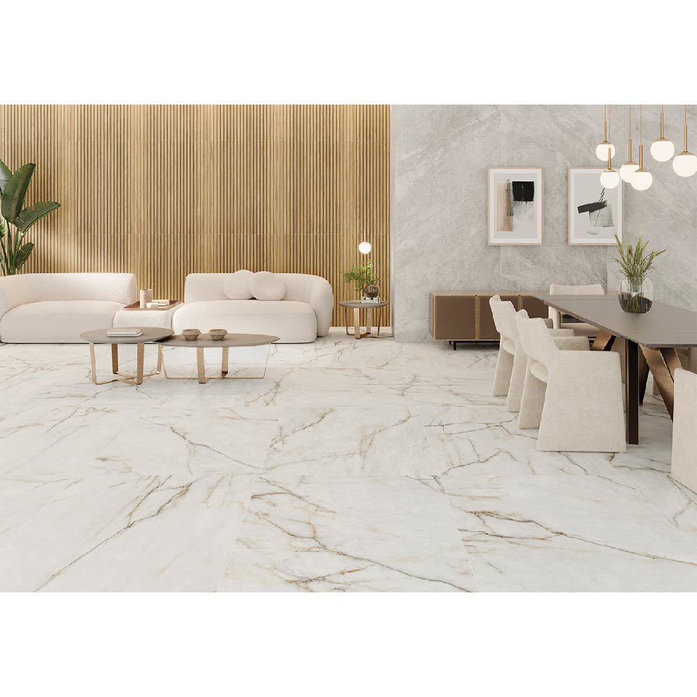 Bay’s design approach aims to achieve a fluid and contemporary look through the use of black, gold and reddish veins. These veins are applied with precision to create a play of light and shadow, thanks to the shimmering reflections embedded in the design. The result is a sense of movement and depth that adds an extra level of complexity and sophistication to the interior design of the home.
