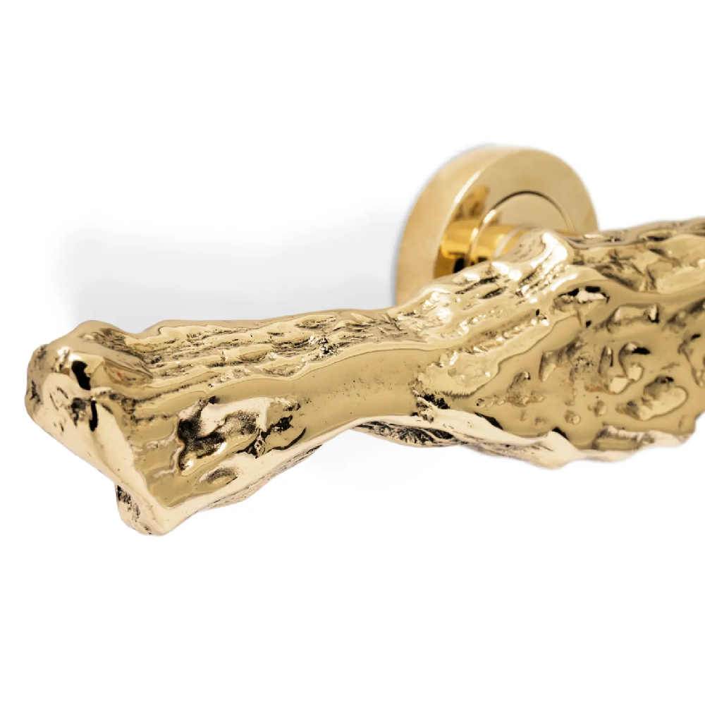Our Inspiration for the Kesya door hardware was drawn from the very uneven texture of the bark pine tree, known by its endless evergreen. Honoring the past and ancient roots but evoking prosperity, this distinguished luxury small door lever enables you to create a sculptural scheme in your furniture designs.