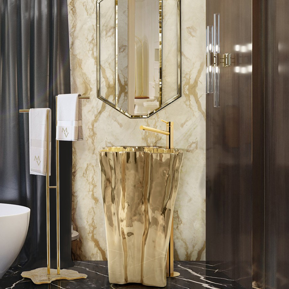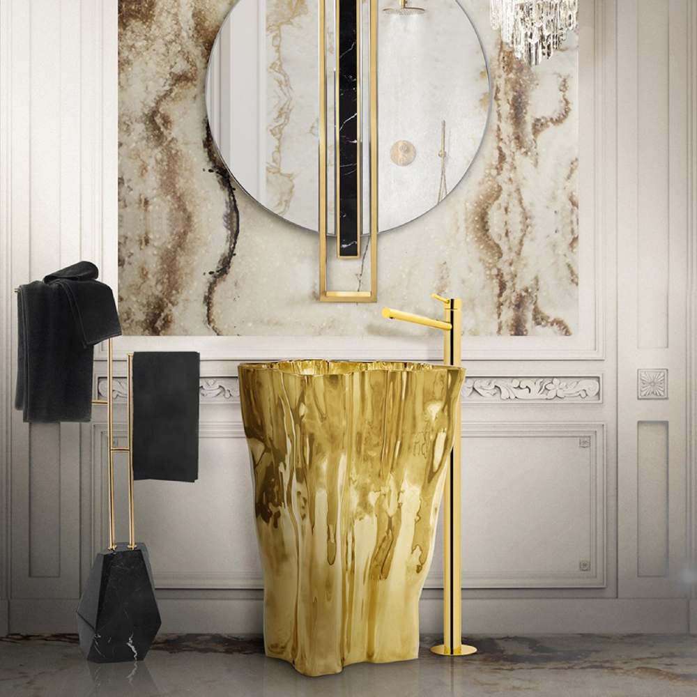 Italian Modern Bathroom Vanity Sink And Faucet, Armani 26" Matt Gold