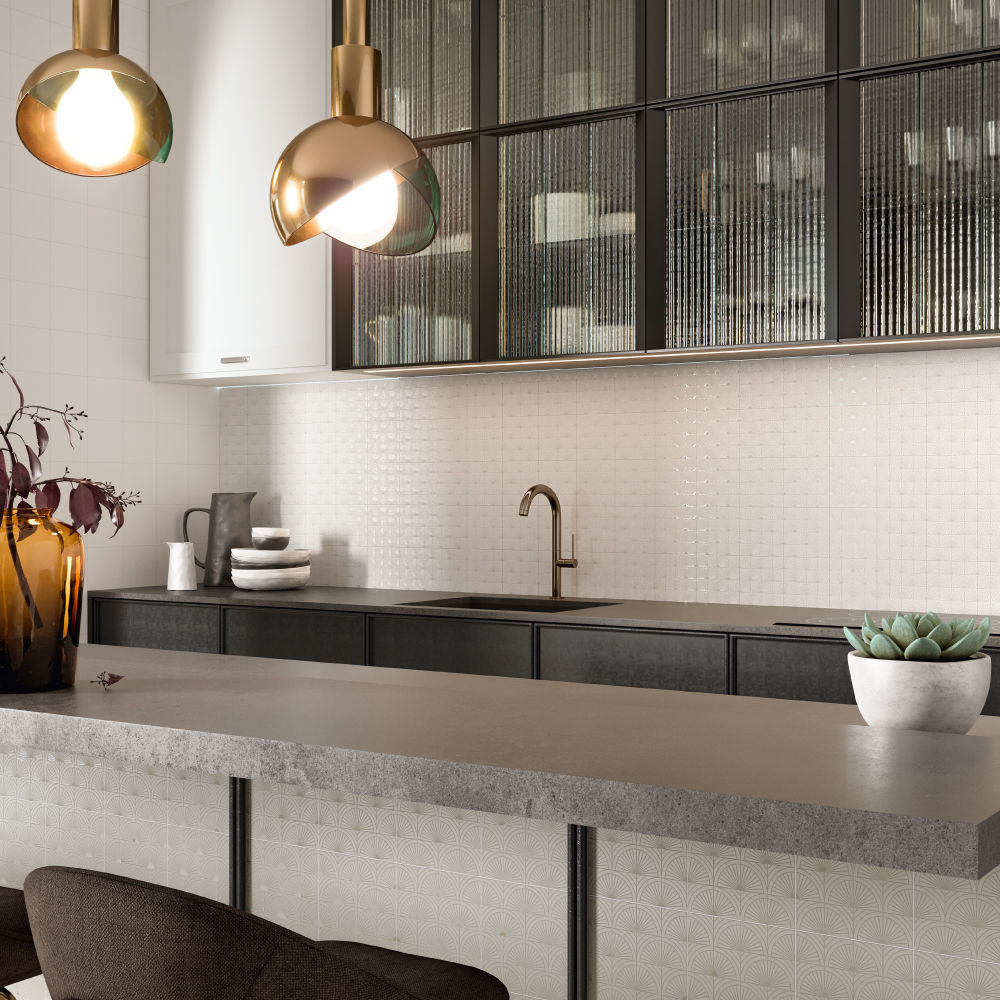Elegance tiles are a sumptuous, curvilinear shape whose arch is the center of attention. The trend in interior design is appreciated by lovers of captivating design.
