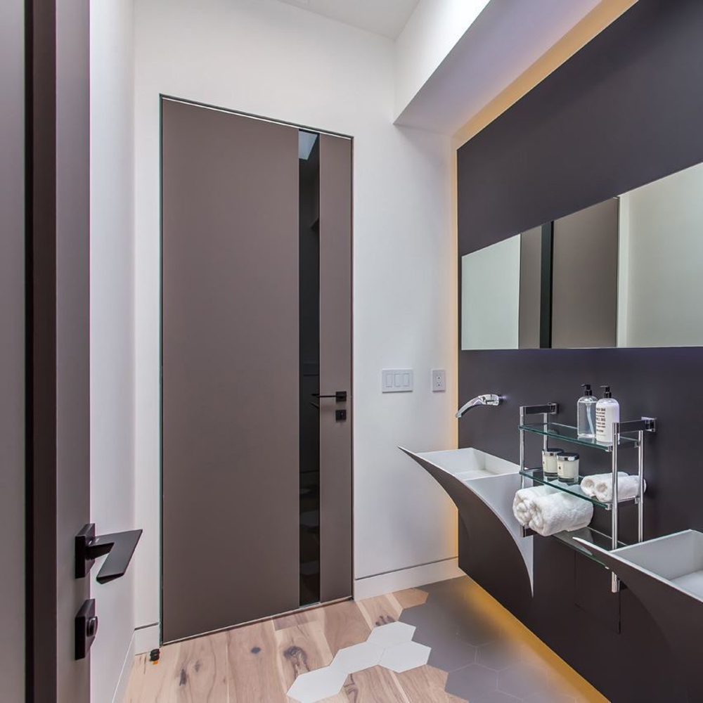 Moreover, this black laminated 75% transparent glass door will be well-suited to your super-modern rooms.