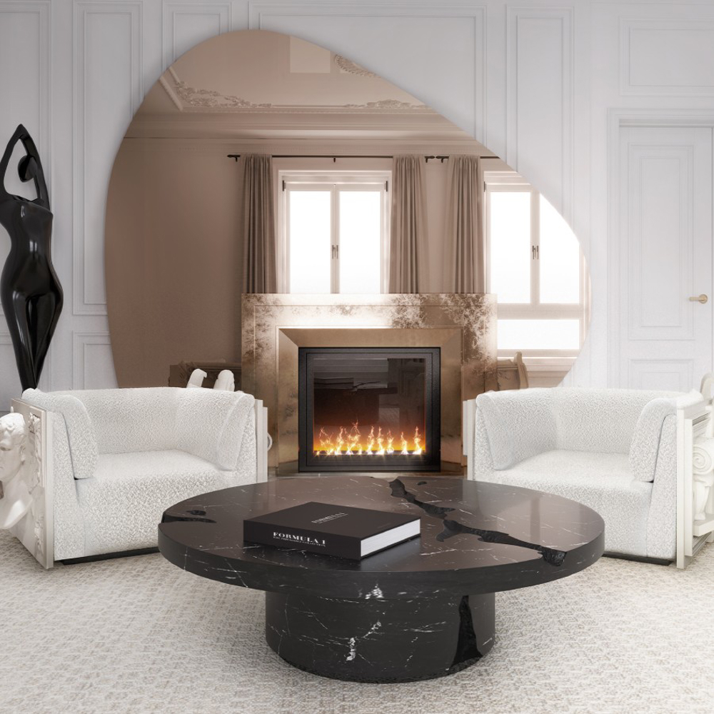 Great Empire’s take centuries to build, and those who rise after taking a fall find their true strength. Great decisions are taken around powerful tables among determined minds. The Empire coffee table symbolizes generations of gatherings and decisions, both in times of celebration or tension. Its cracks reflect tough times, revealing a gold interior in a manifesto towards power. Flawless and bright, the remaining surface points towards a thriving future, reminding one to toast to prosperity.