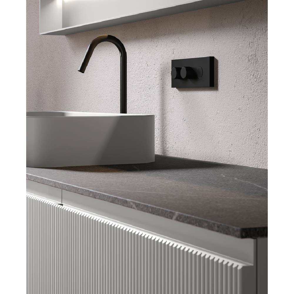 Clean-cut profiles, counter top, handle grip integrated in the door. EROS presents the refined effect of the cannetted texture in a narrative dimension that is entirely new for Edoné and, by exploiting the technical advantages of pressed polymer, maintains the parameters of elegance and quality unchanged, taking beauty to a new level of accessibility.