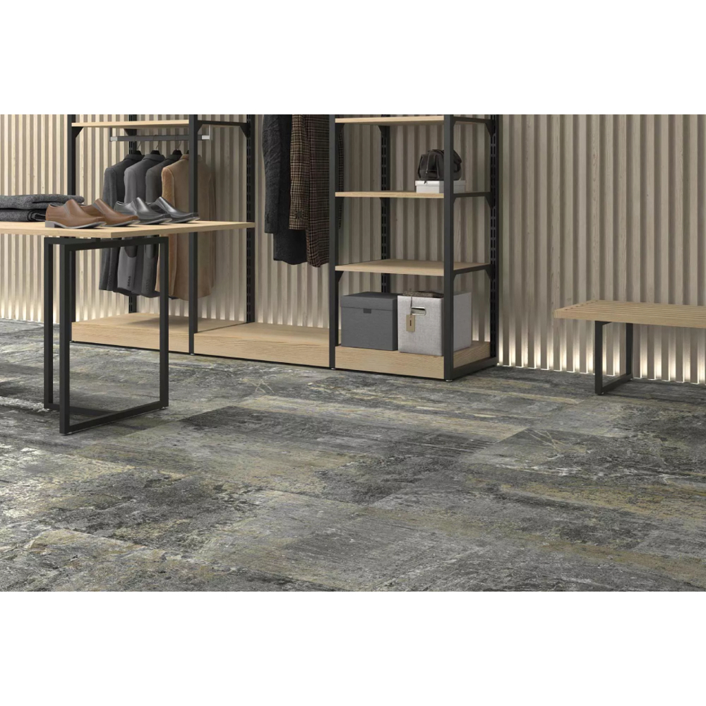 Available in 24”x48” and 24”x24” formats, Erosion features a lappato finish—an intermediate sheen between matt and gloss—that delivers a smooth, elegant surface while maintaining exceptional anti-slip properties. This makes it suitable for floors, walls, and feature surfaces, combining practicality with style.