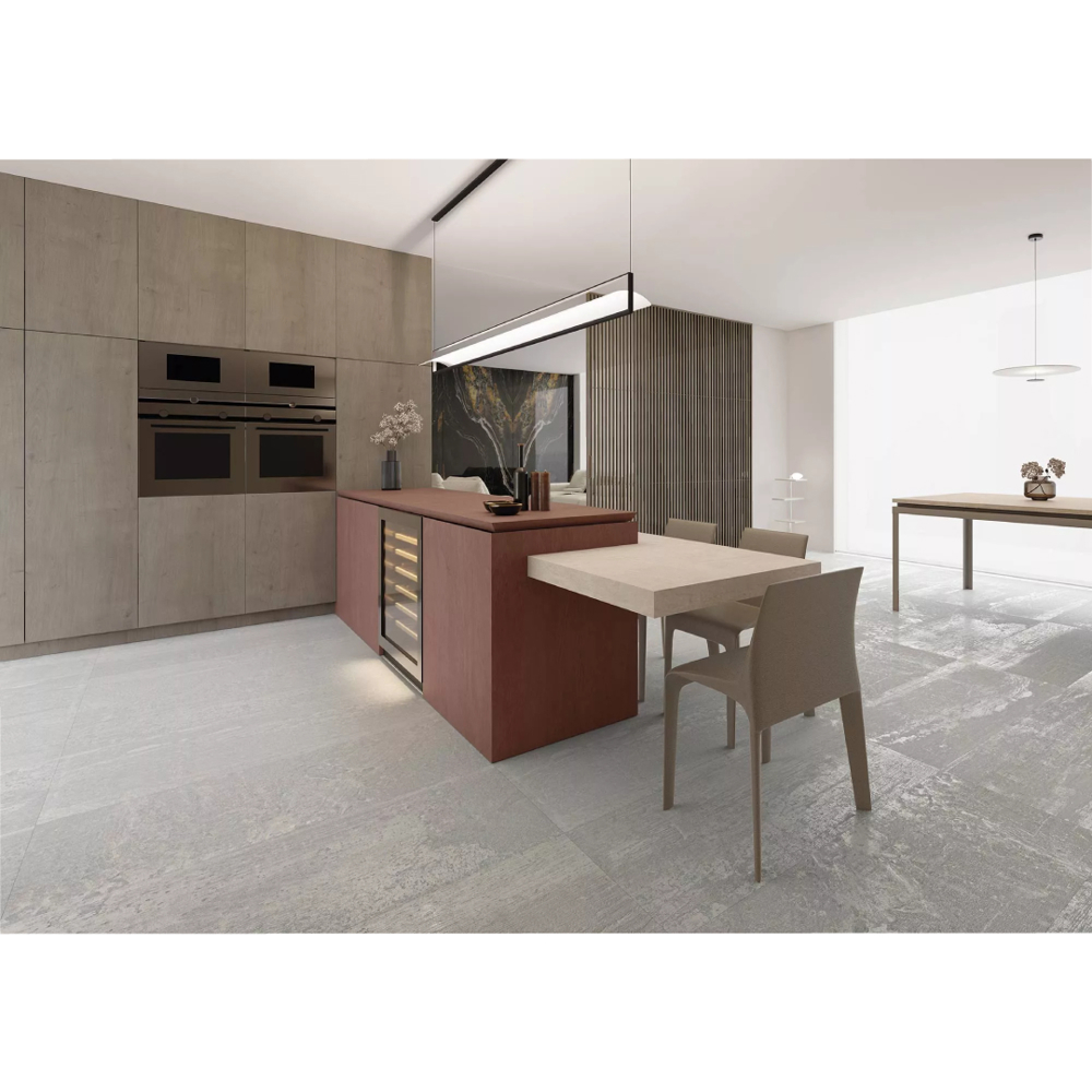 Available in 24”x48” and 24”x24” formats, Erosion features a lappato finish—an intermediate sheen between matt and gloss—that delivers a smooth, elegant surface while maintaining exceptional anti-slip properties. This makes it suitable for floors, walls, and feature surfaces, combining practicality with style.
