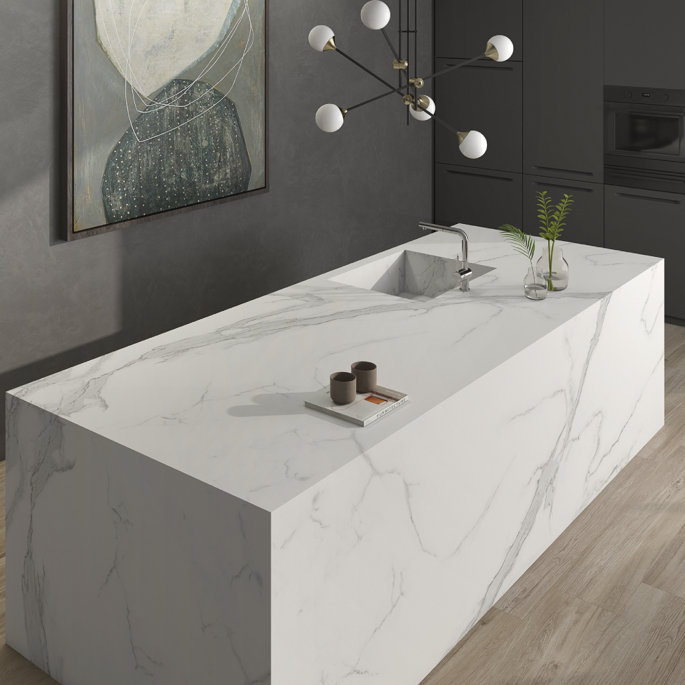 Marblessa Countertops collection is a new sintered mass that provides solutions for kitchen countertop with character and personality. Born as a result of a deep study of decorative trends and the most contemporary demands. Its large dimensions 63"x126", and the extremely high-performance technical features make it an ideal material for the most demanding product applications such as kitchen countertops.