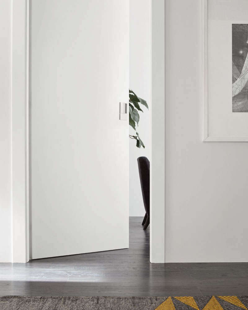 A white lacquered pantograph door and from the effect ultra matt, for chic environments.