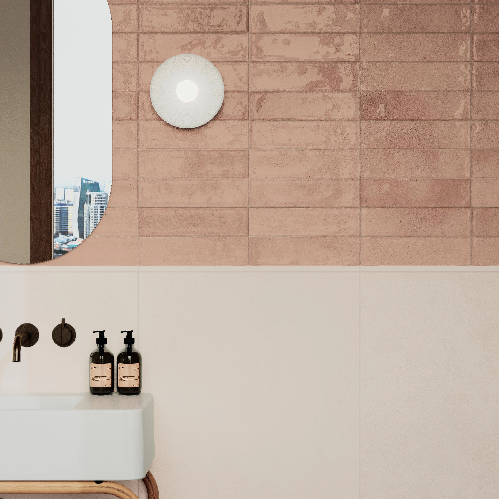 The collection was born from the fusion of concrete and plaster: shades of light, color, and matter soften the rigor of the concrete, creating an original balance between an industrial vibe and expressive vitality.