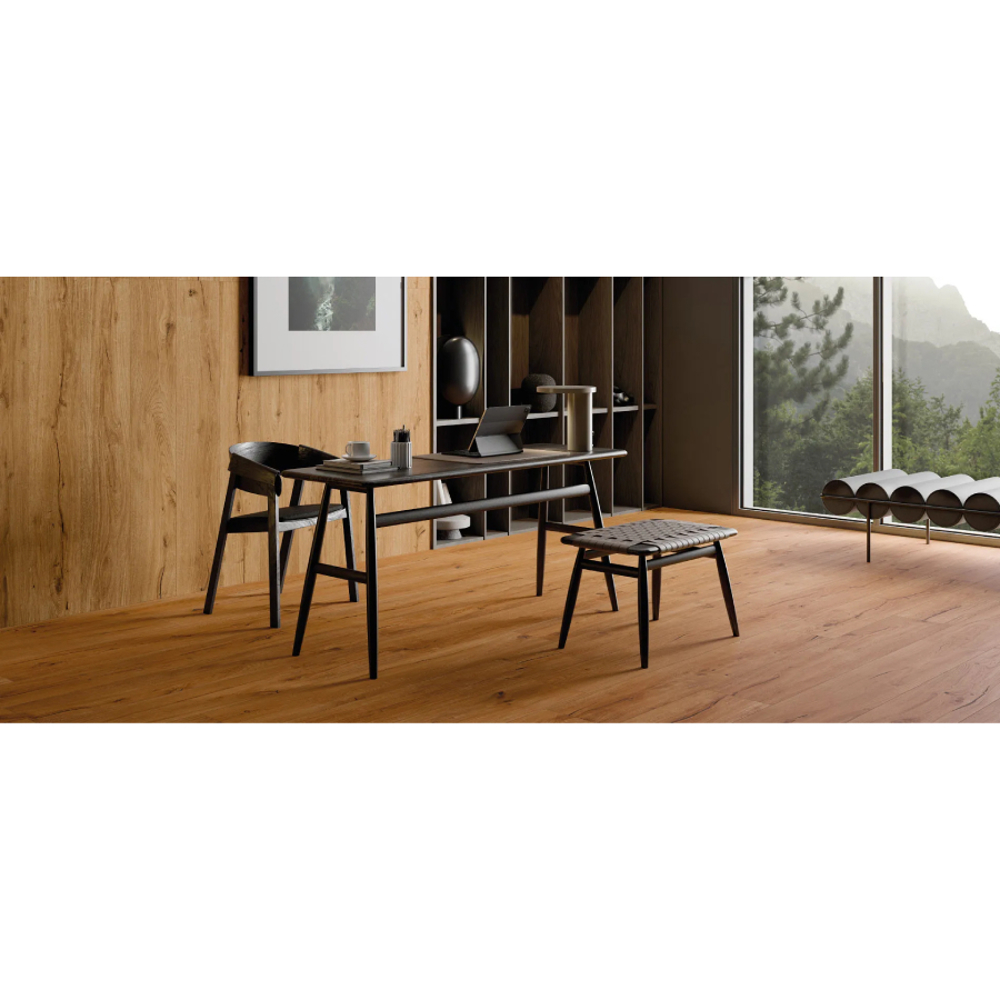 Part of the BOTTEGA Feelwood collection, Cherry faithfully reproduces the knots, grains, and natural tones of real wood while providing the durability and low-maintenance benefits of porcelain stoneware. This makes it an ideal choice for bathroom, kitchen, and living room floors and wall coverings, offering the refined look of parquet with superior performance.