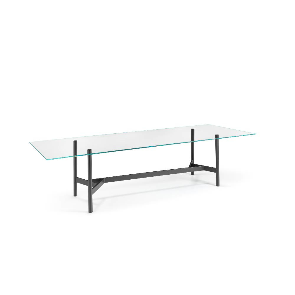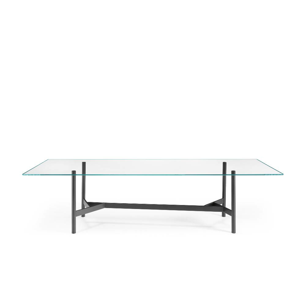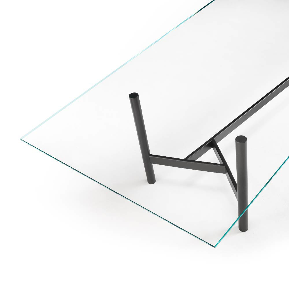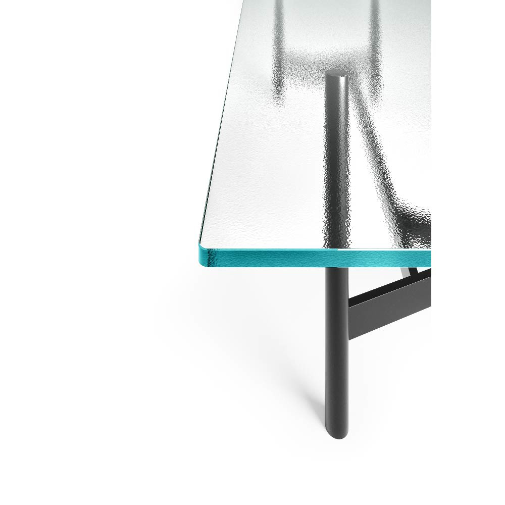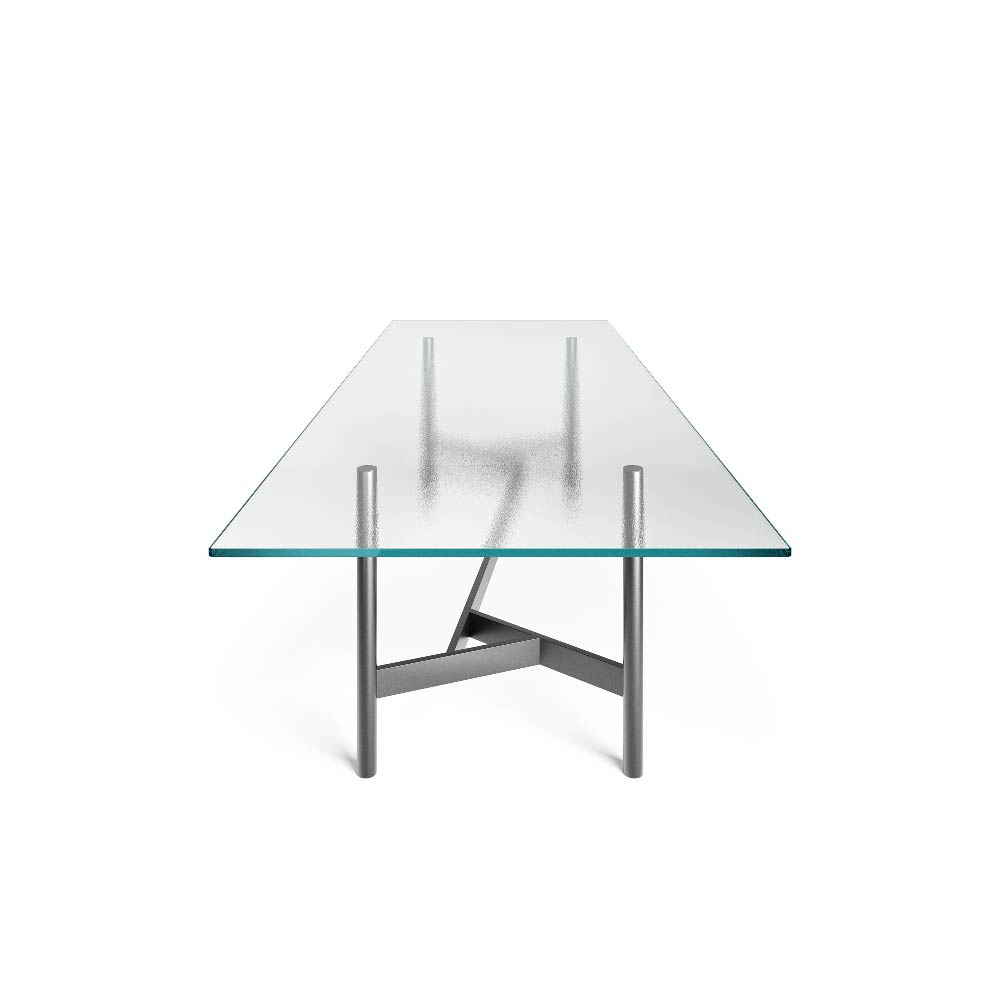 The top is available also in 0.59" tempered extralight glass, or in 0.63" bronze or smoked glass, layered and bevelled.