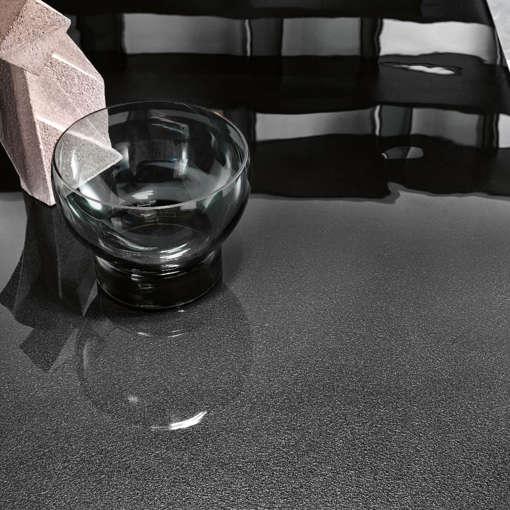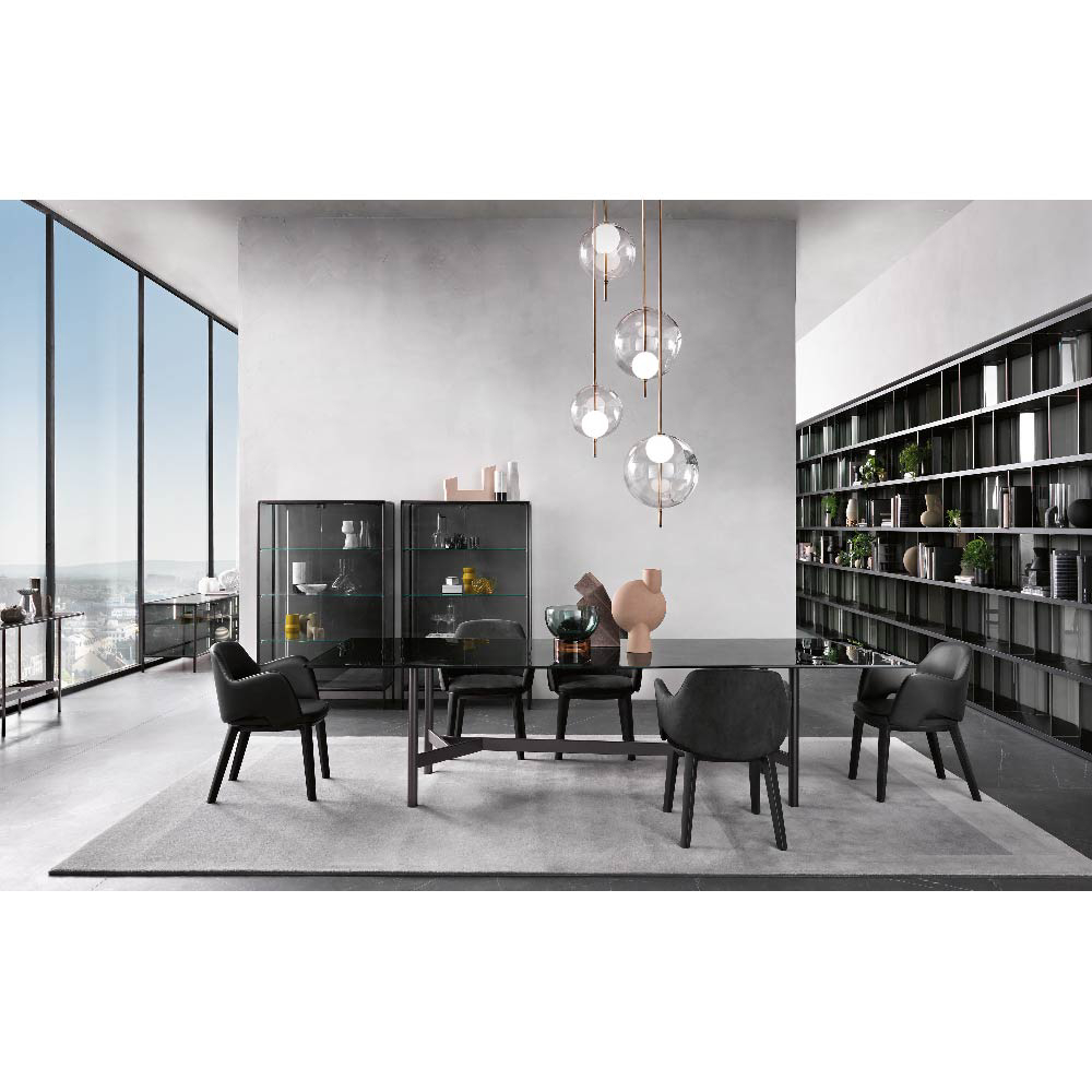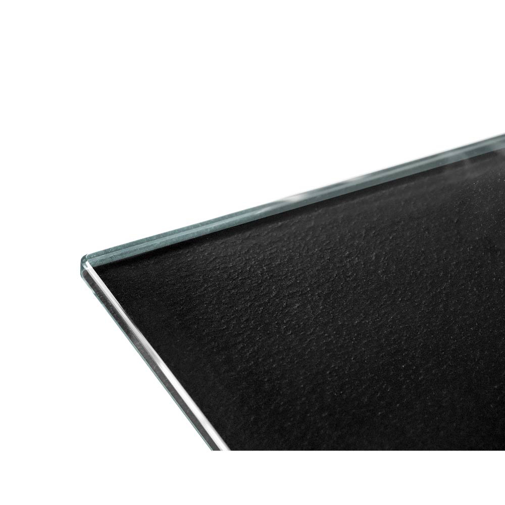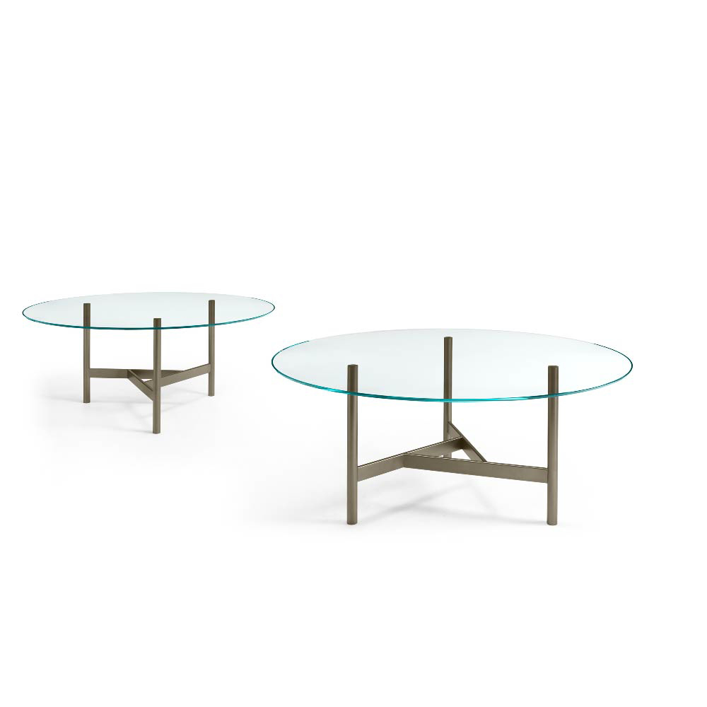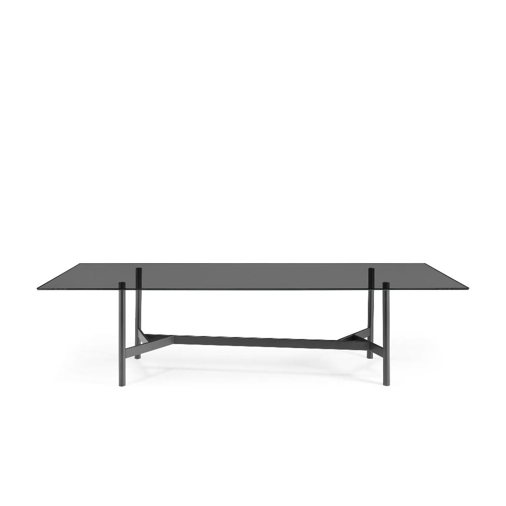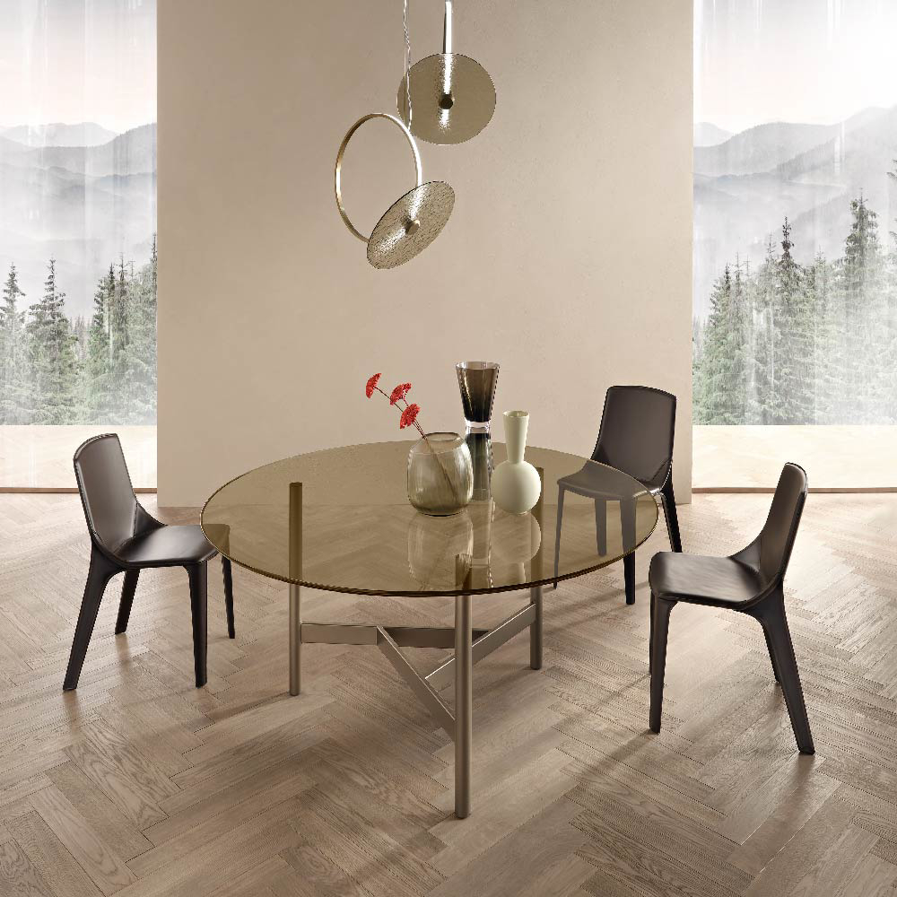 The top is available also in 0.59" tempered extralight glass, or in 0.63" bronze or smoked glass, layered and bevelled.