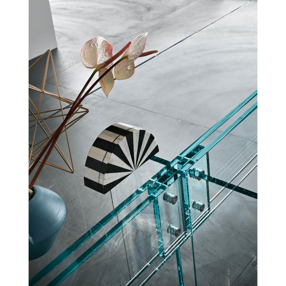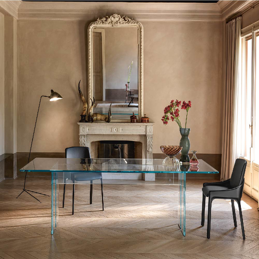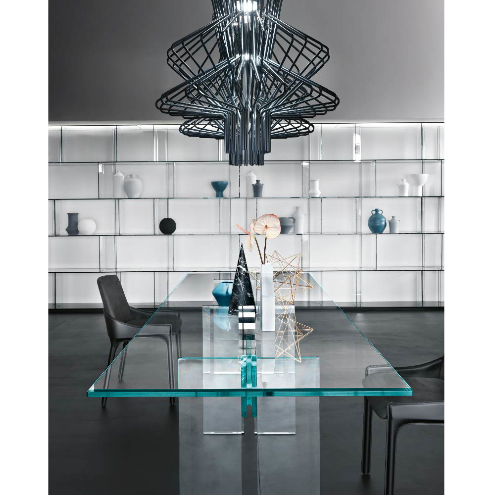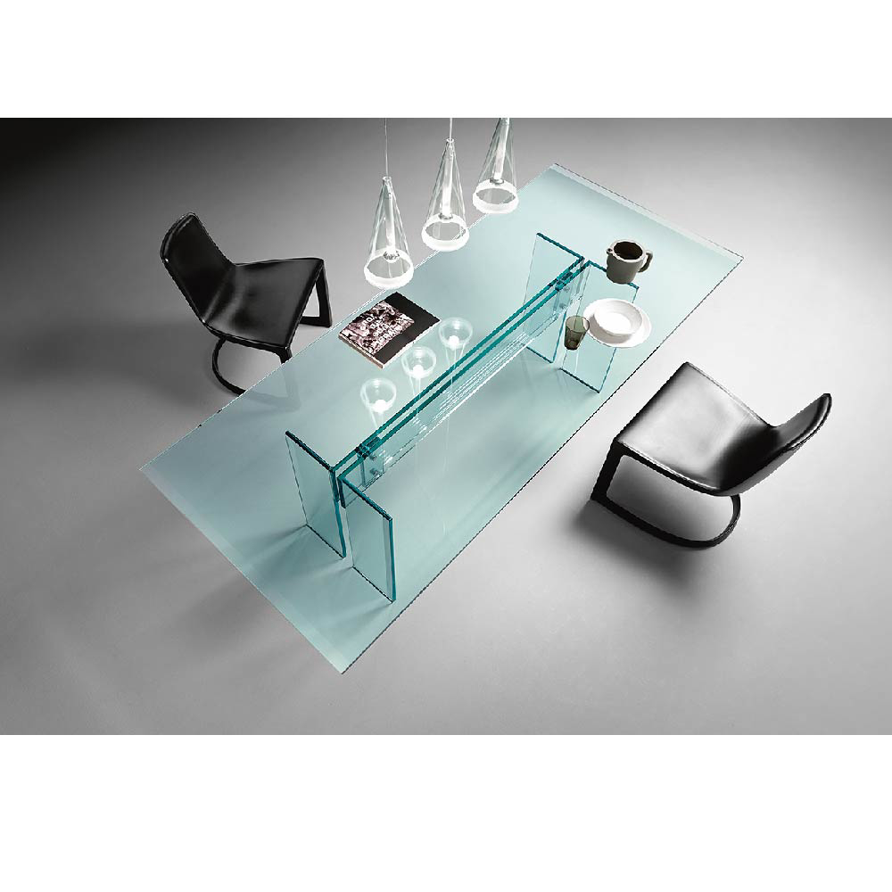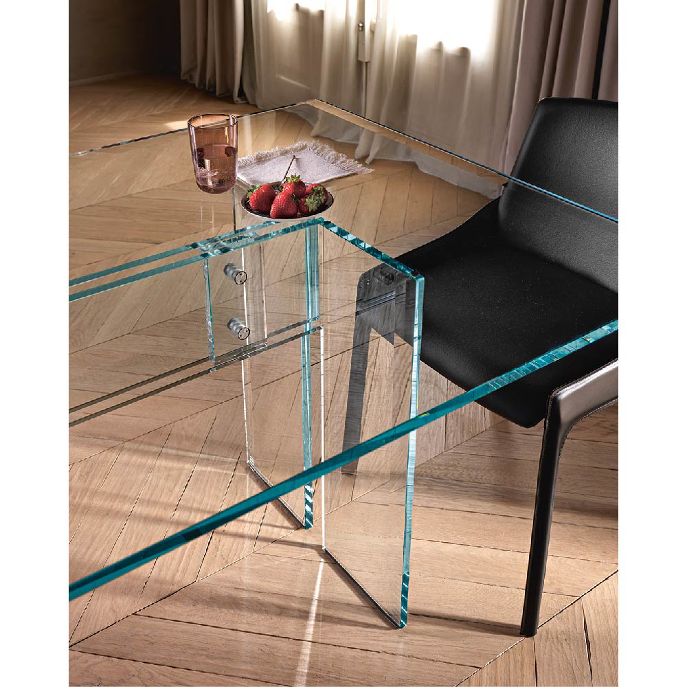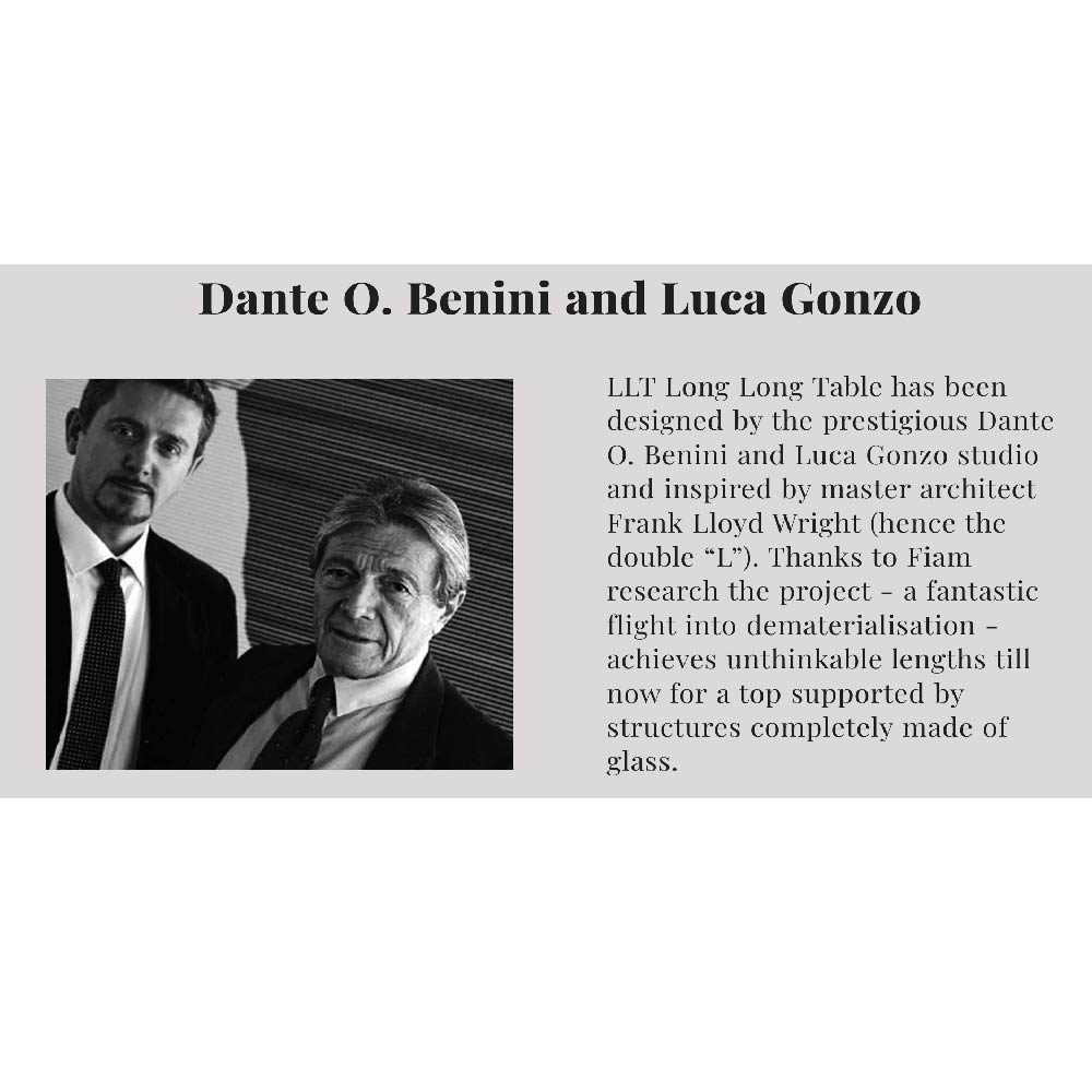 Dante Oscar Benini and Luca Gonzo are the designers of several pieces of furniture in curved glass by FIAM. They have designed in particular the LLT collection , which includes consoles, desks and tables.
