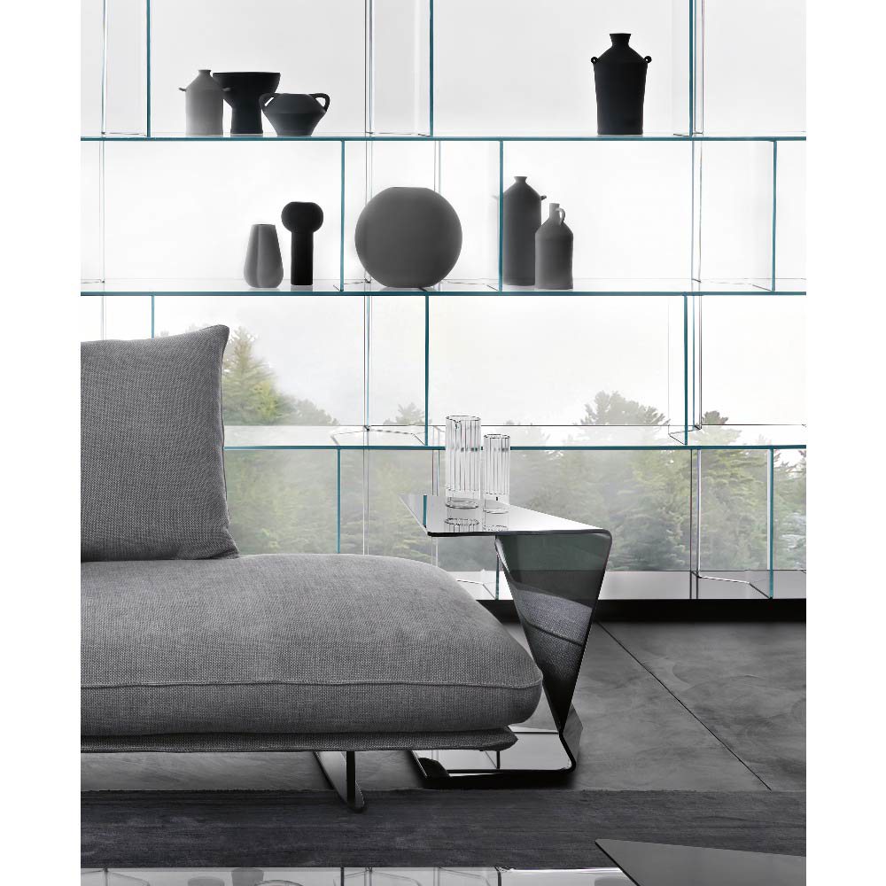 Laura Aquili and Ergian Alberg are the designers of SIGMY coffee table in curved glass.