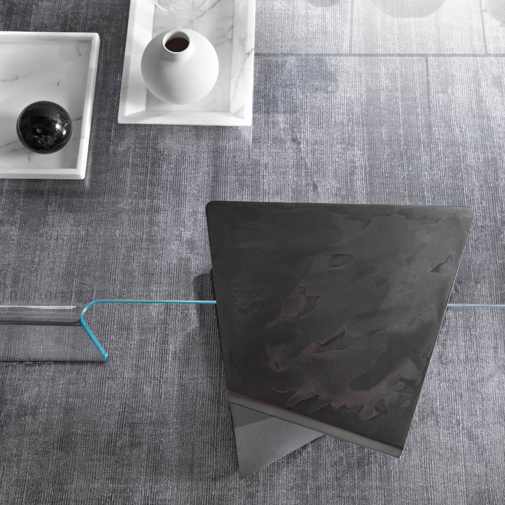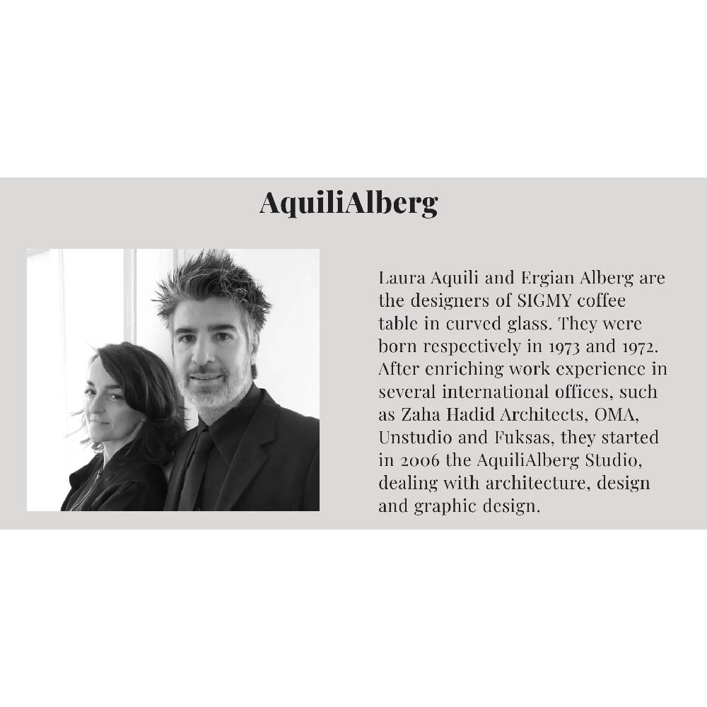 Laura Aquili and Ergian Alberg are the designers of SIGMY coffee table in curved glass.