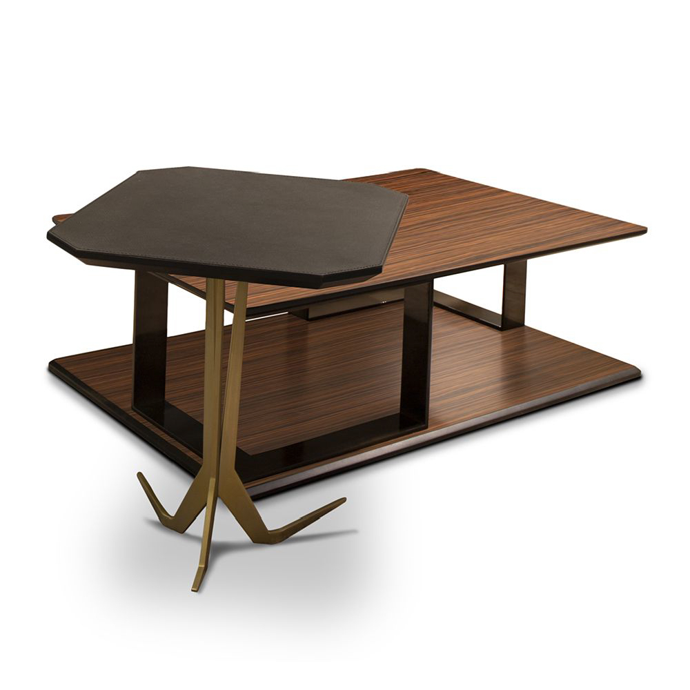 Top & floor base in veneer Palissandro matt finish, metal structure nickel bronze finish.