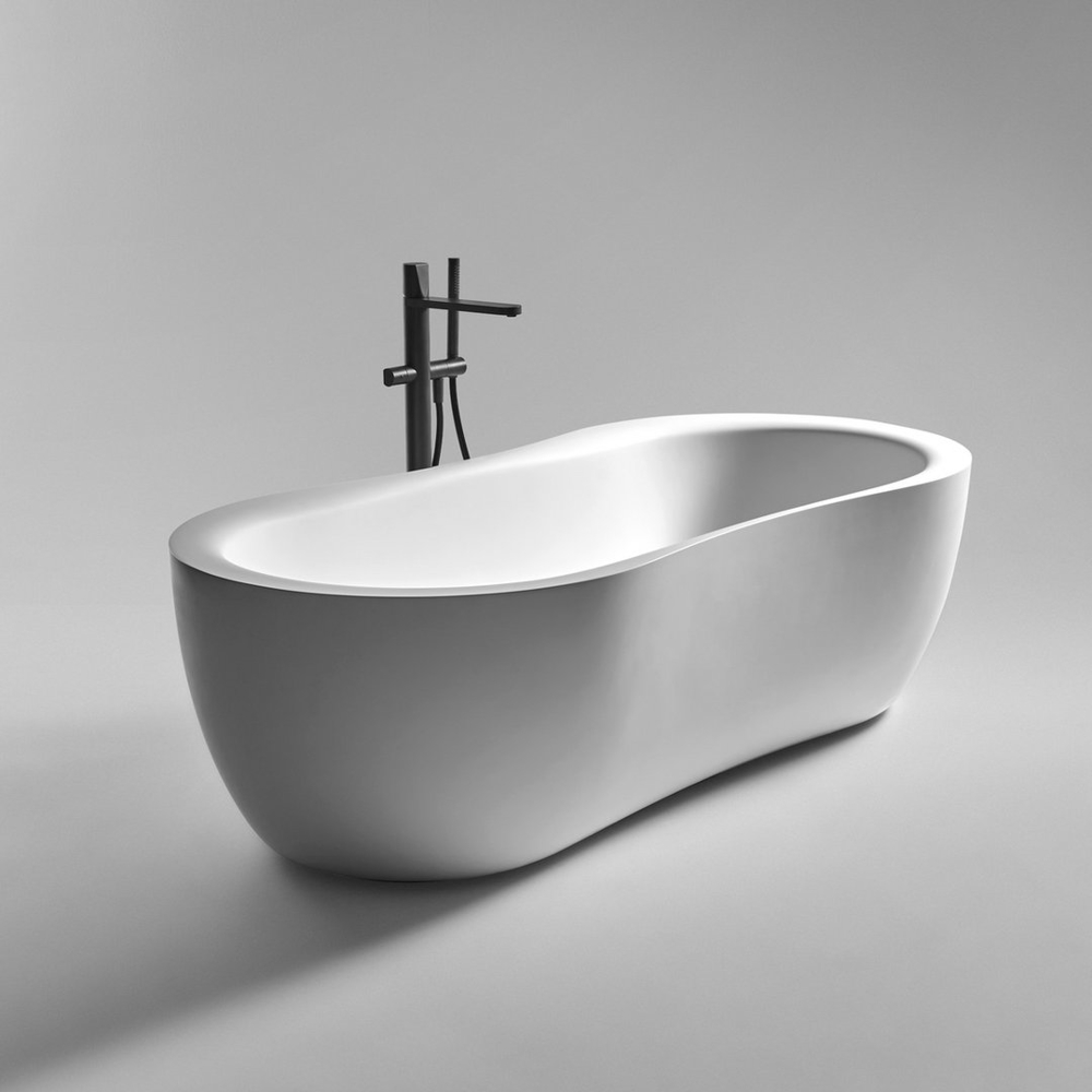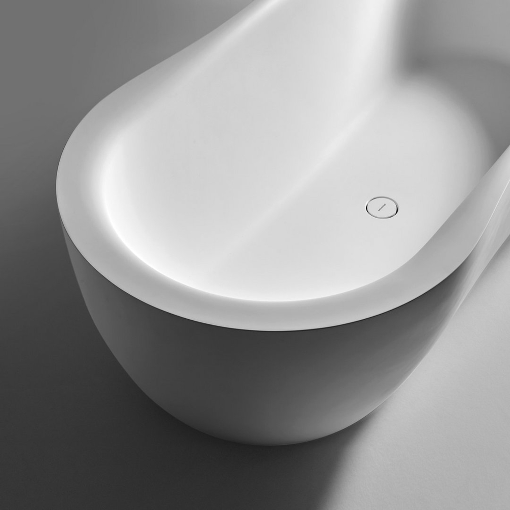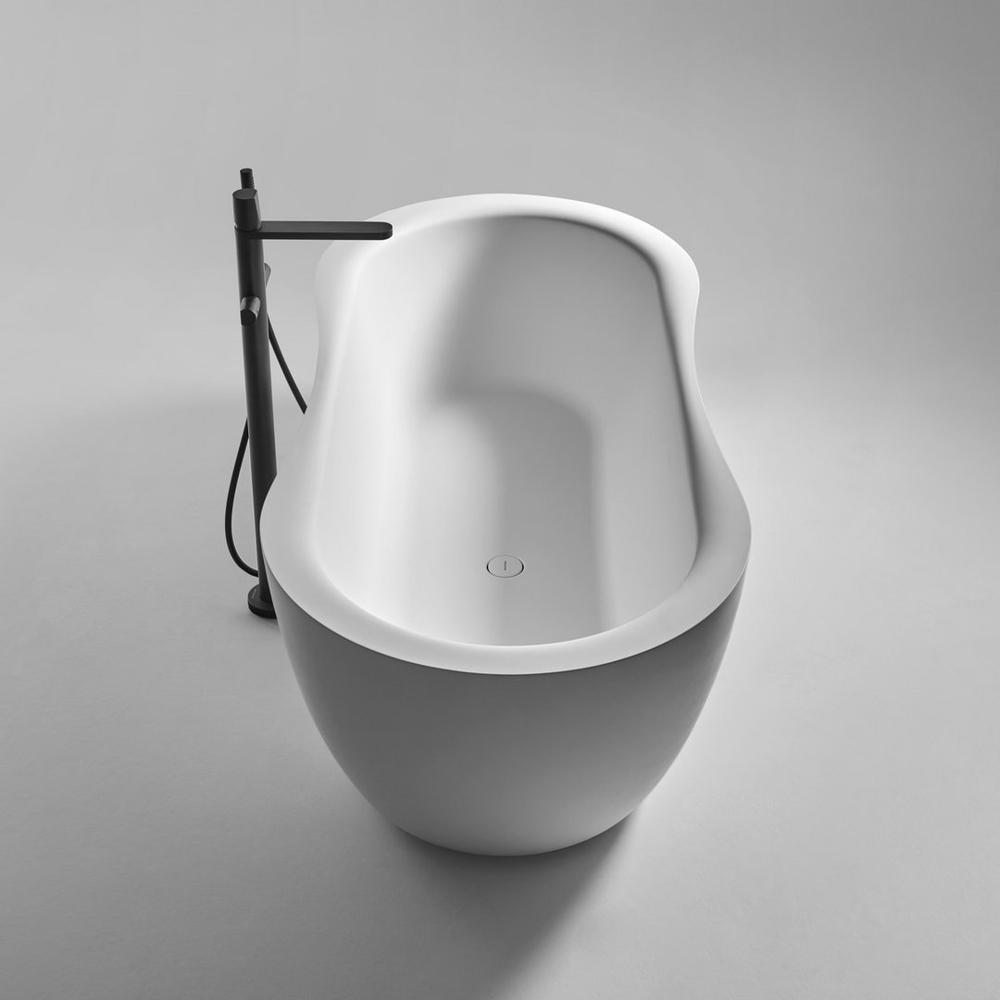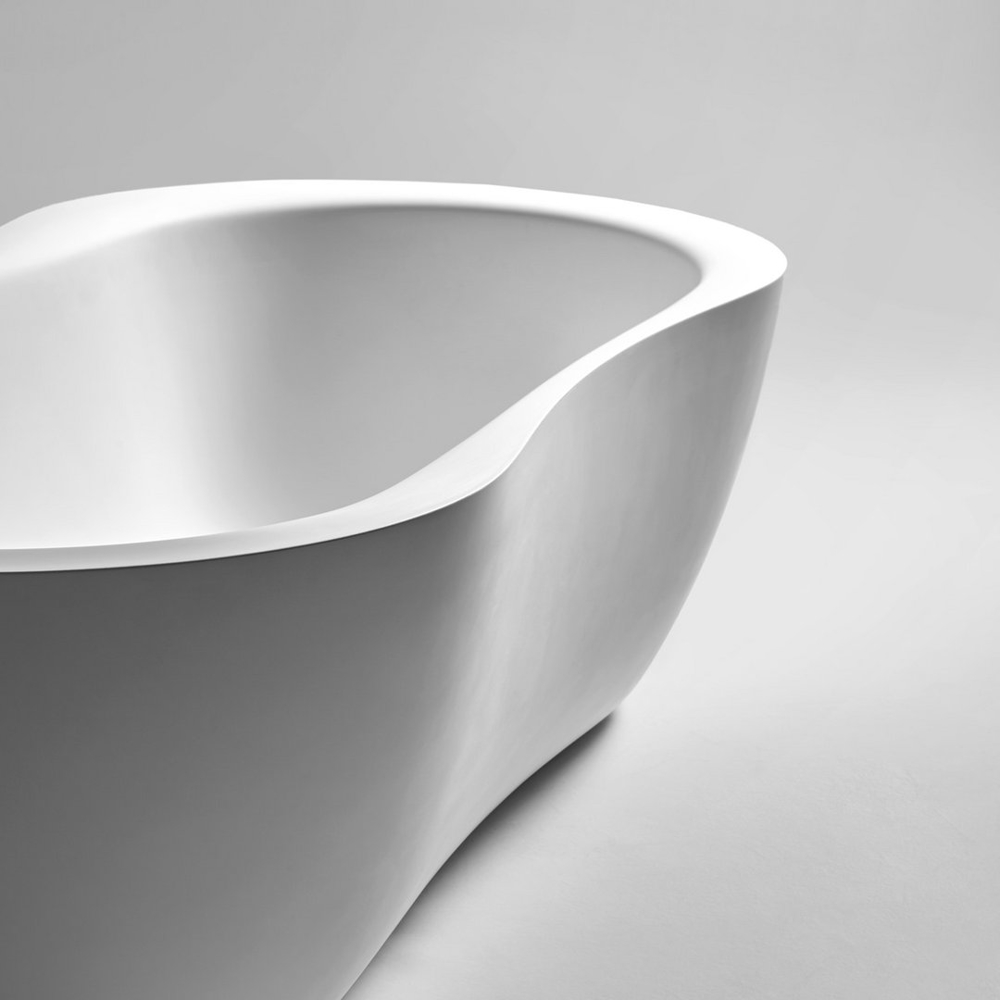 The Fida bathtub is inspired by nature. The outer line takes its cue from the organic shapes of river woods, which give the piece a feeling of fluidity. The edges are beveled and the lines soft. The interior of the bathtub is an ergonomically designed to envelop and give comfort to those who immerse themselves within. Like a real sculpture, carved from a monolith, it is available in various versions of stone and marble, materials that emphasize the idea of a concept related to nature.