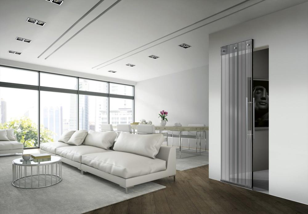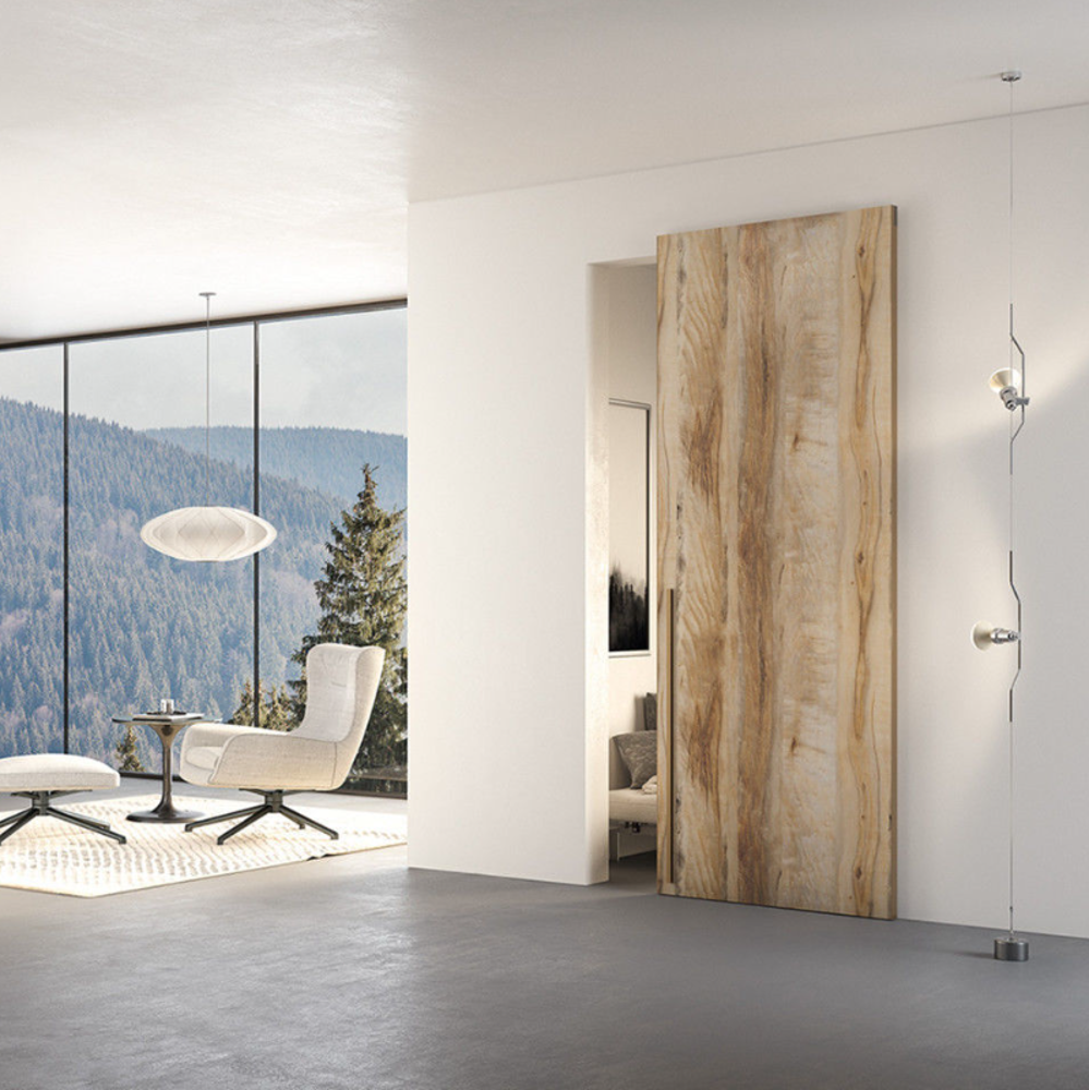 Fila is Legnori external sliding door collection, conceived for those who love utmost aesthetic neatness. With its concealed sliding bar, Fila is the perfect solution to part spaces without masonry works. The style can vary from classic to modern thanks to the assorted range of wood veneers, glossy, lacquered finishes, finishes with concrete effect with the possibility to be further finished as required.