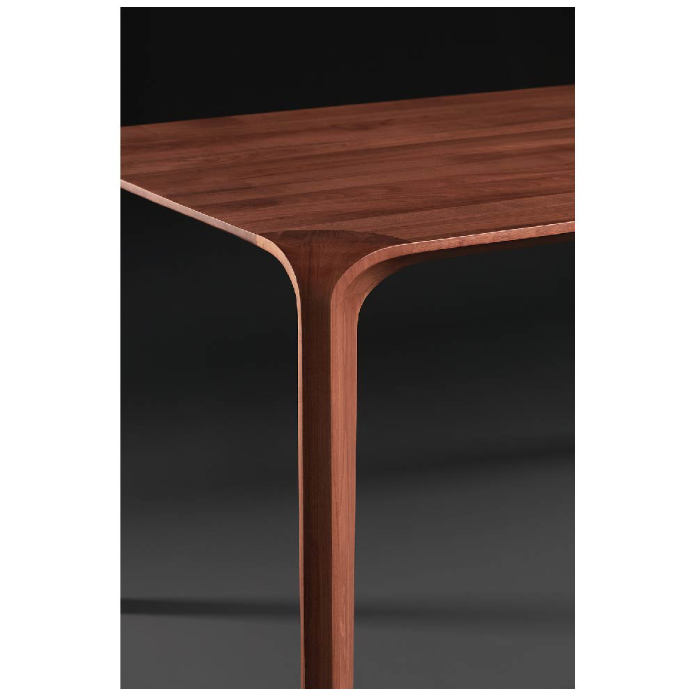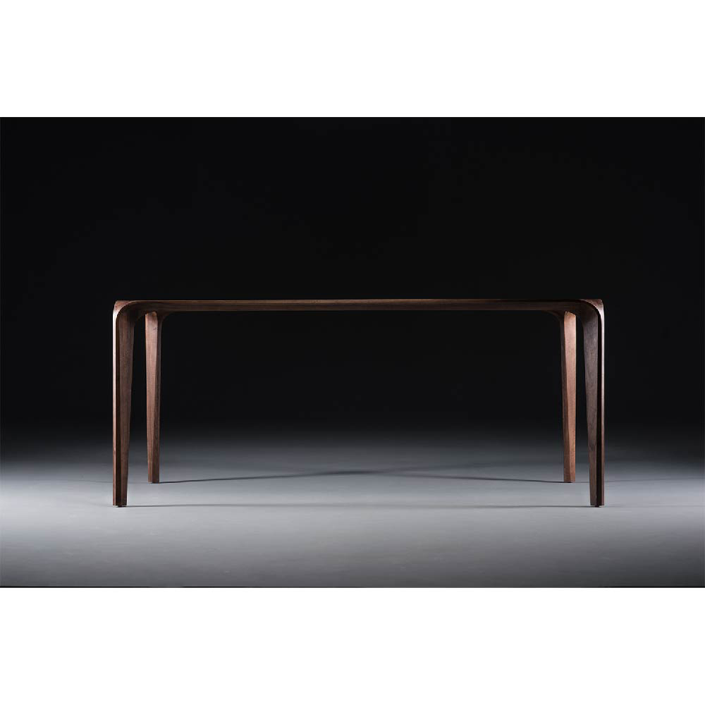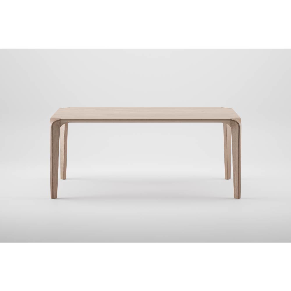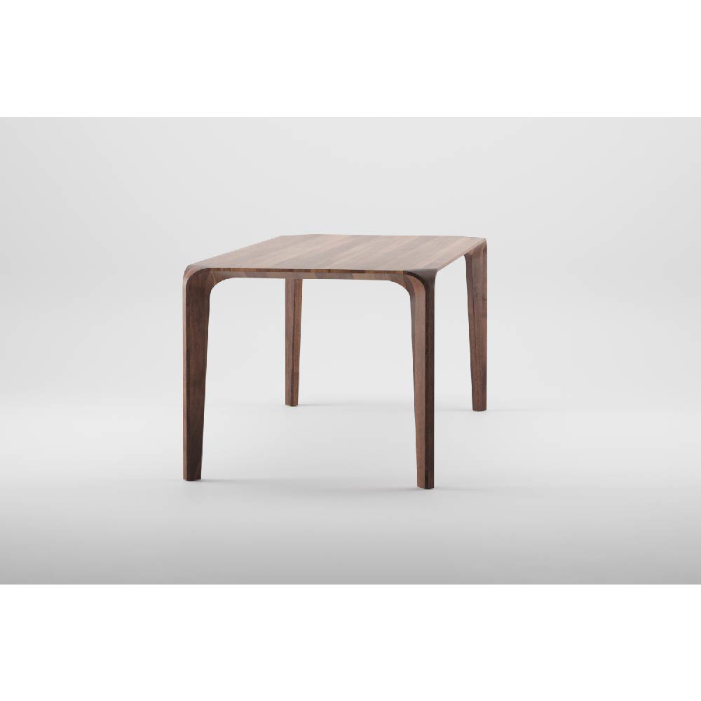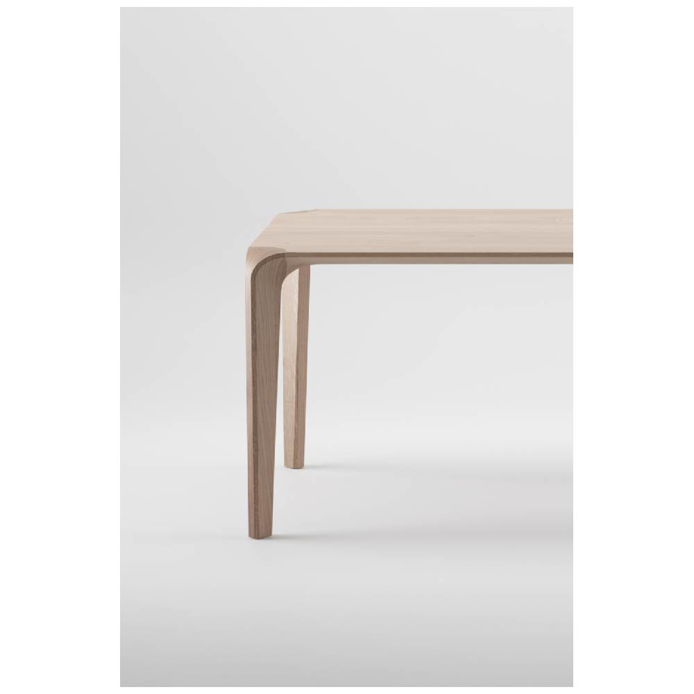The high level of final refinement evokes an impression of a curved form, of an ongoing flow of unique material surface. The material’s structure generates a texture underlying the flow. An optical illusion of sorts ensues, visually alluring, without disturbing the function, accentuating the strength and pliability of the raw material by masterfully processing a delicate idea. The beauty of strong geometry has been softened by visible structure of the material, wood, adaptable in terms of color and final processing, as well as in dimensions.