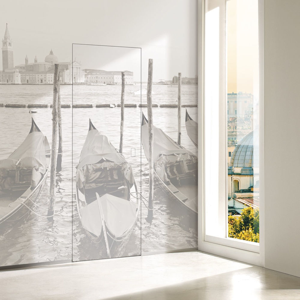 The INFINII flush door is the invisible solution par excellence. It integrates completely with the surrounding walls and is available with coplanar push or pull-opening. Download the catalogue for more details.